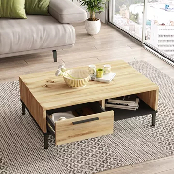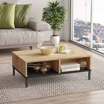 Τραπεζάκι Σαλονιού ArteLibre BALHAM Φυσικό/Μαύρο Μοριοσανίδα/Μέταλλο 90x60x31.5cm