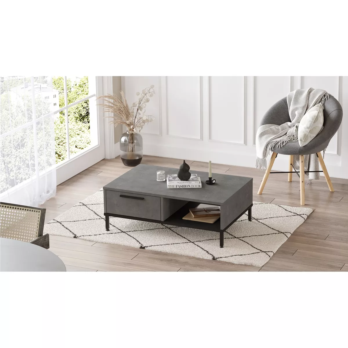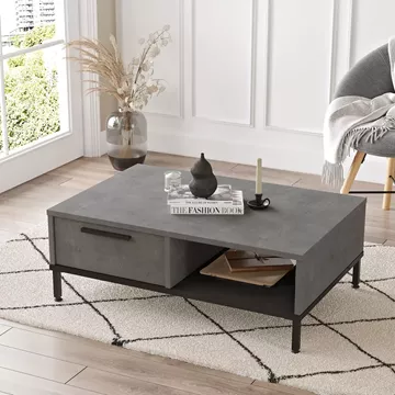 Τραπεζάκι Σαλονιού ArteLibre BALHAM Γκρι Με Εφέ Τσιμέντο/Μαύρο Μοριοσανίδα/Μέταλλο 90x60x31.5cm