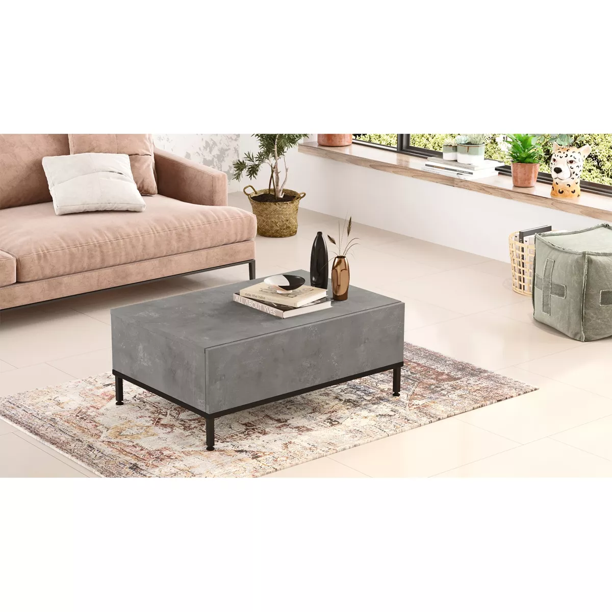 Τραπεζάκι Σαλονιού ArteLibre BARNET Γκρι Με Εφέ Τσιμέντο/Μαύρο Μοριοσανίδα/Μέταλλο 90x60x35cm
