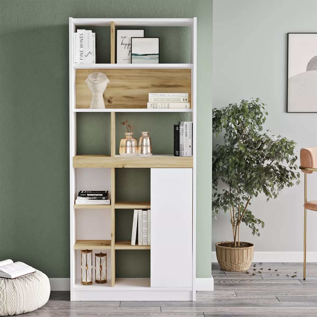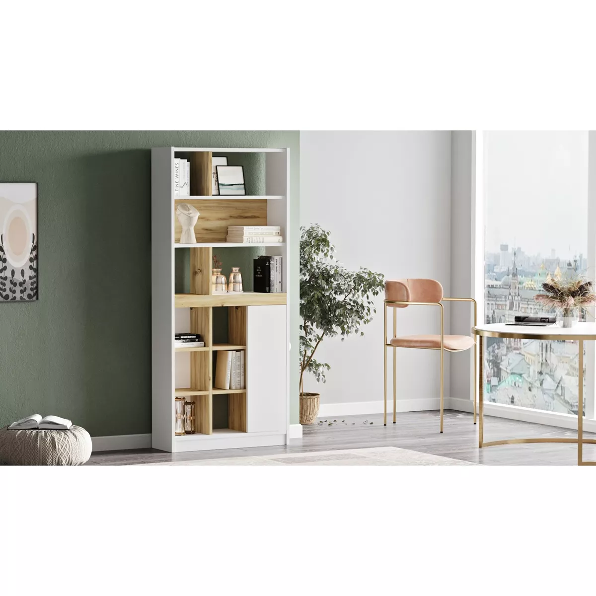 Βιβλιοθήκη ArteLibre BERRYLANDS Λευκό/Φυσικό Μοριοσανίδα 75.6x25x170cm