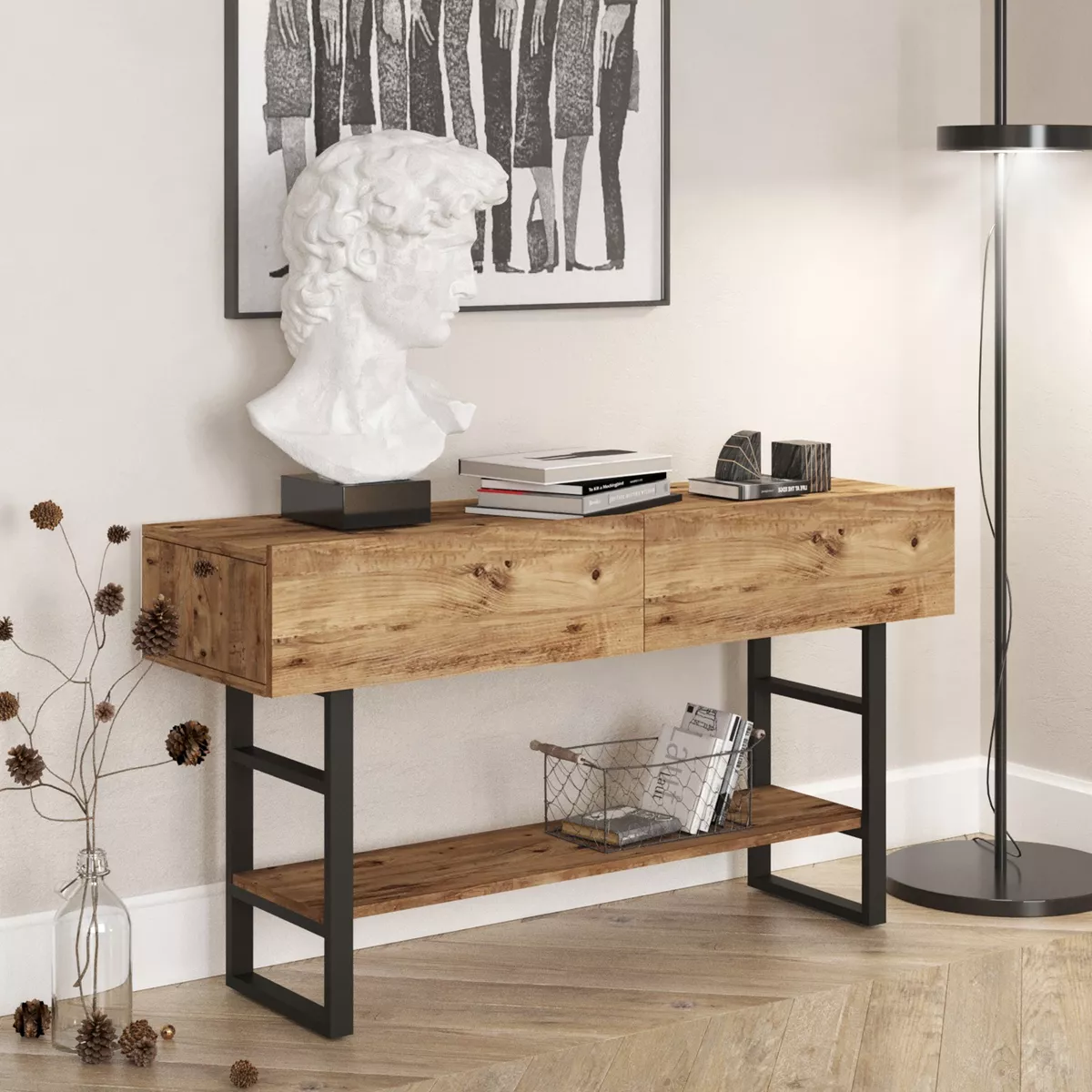 Κονσόλα ArteLibre BICKLEY Πεύκο/Μαύρο Μοριοσανίδα/Μέταλλο 139x75.7x43cm