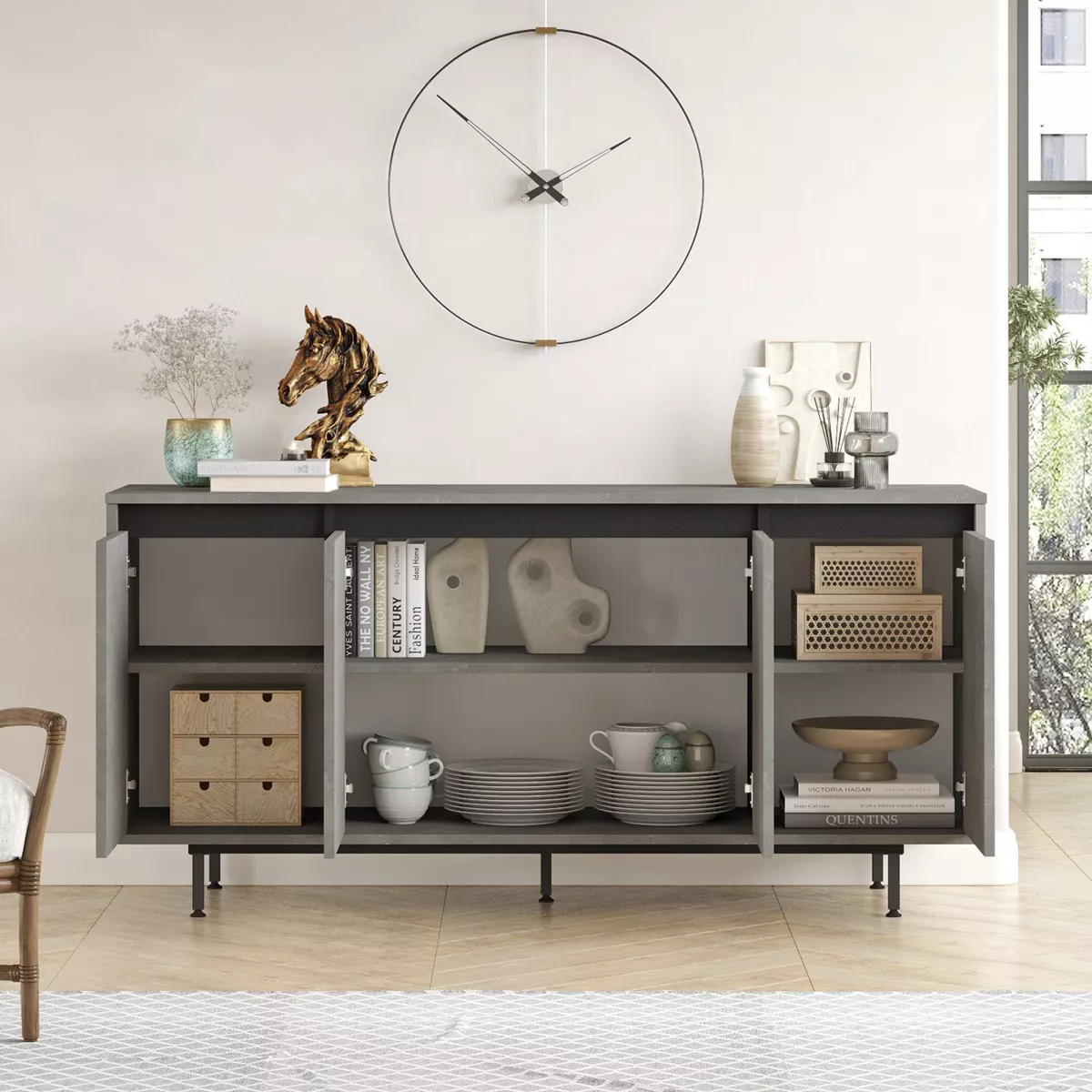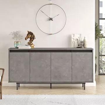 Μπουφές ArteLibre BRENTFORD Γκρι Με Εφέ Τσιμέντο/Μαύρο Μοριοσανίδα/Μέταλλο 160x44.5x75.6cm