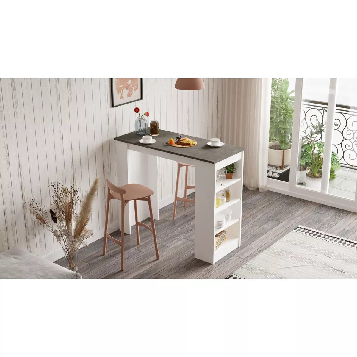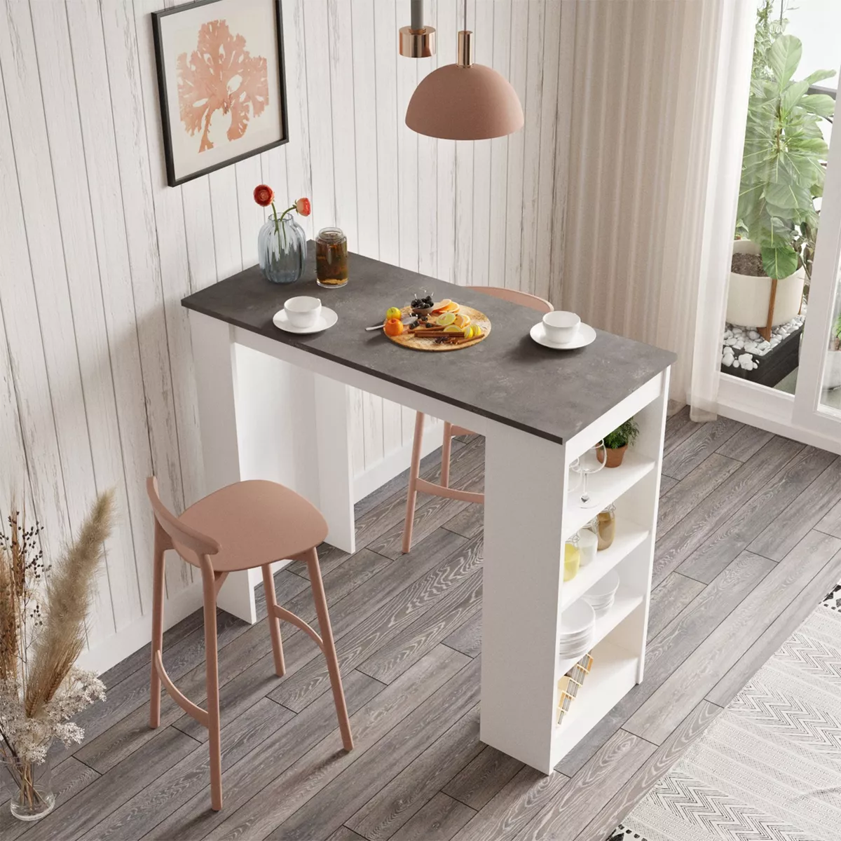 Τραπέζι Bar ArteLibre BROCKLEY Λευκό/Γκρι Με Εφέ Τσιμέντο Μοριοσανίδα 120x51.6x101.8cm