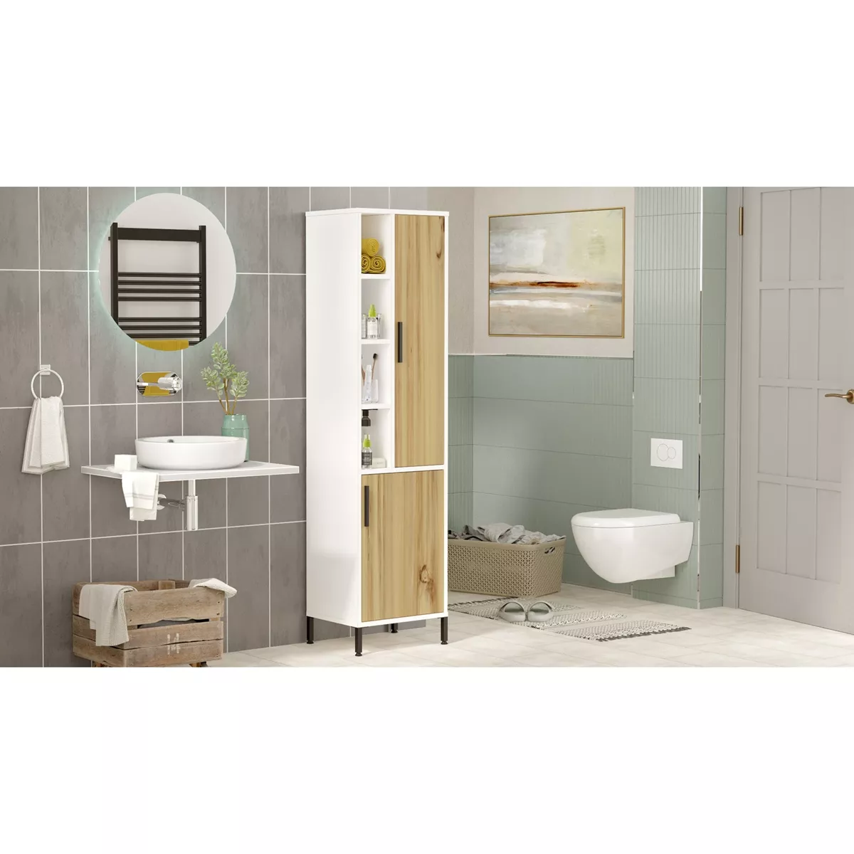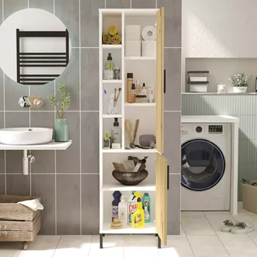 Ντουλάπι Μπάνιου ArteLibre CRANHAM Λευκό/Φυσικό Μοριοσανίδα/Μέταλλο 45.4x35.5x173.6cm