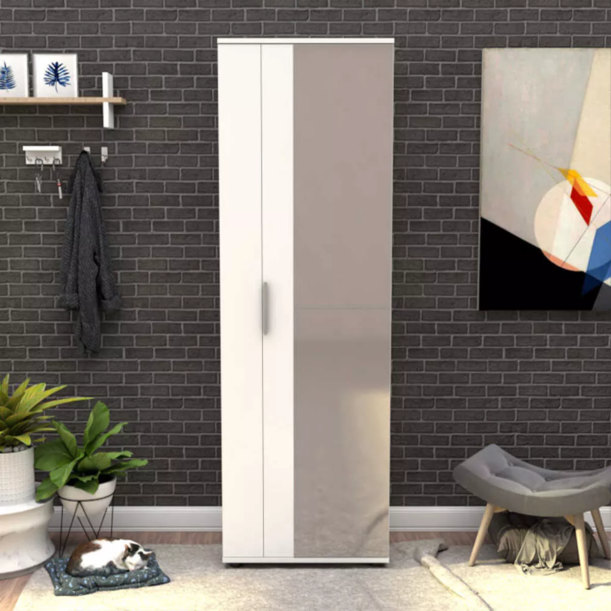Ντουλάπα ρούχων - παπουτσοθήκη 30 ζευγών Porto μονόφυλλη με καθρέφτη λευκή 60x36x187εκ.