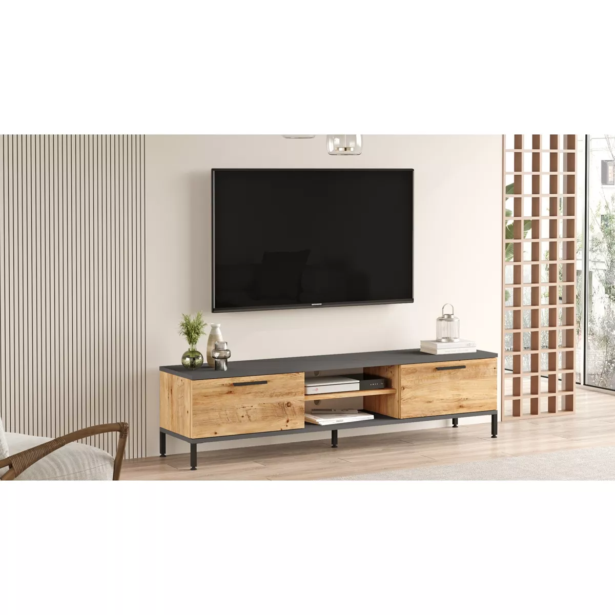 Έπιπλο Τηλεόρασης ArteLibre ENFIELD Πεύκο/Ανθρακί Μοριοσανίδα/Μέταλλο 160x35x39.1cm