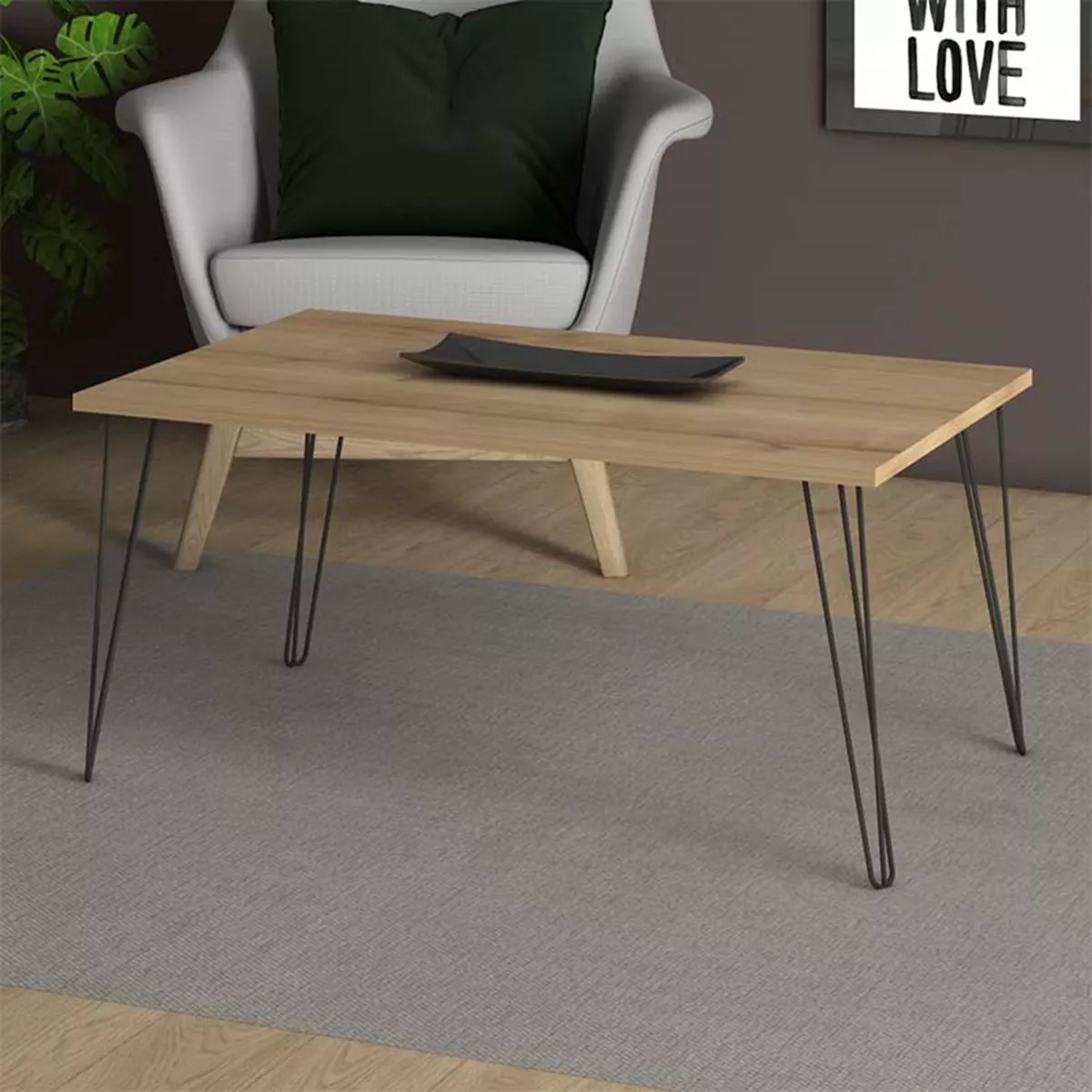 Τραπεζάκι σαλονιού Fiona Megapap μεταλλικό - μελαμίνης χρώμα oak 90x55x43εκ.