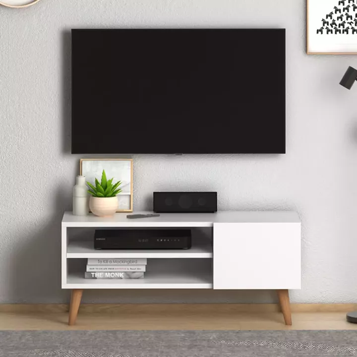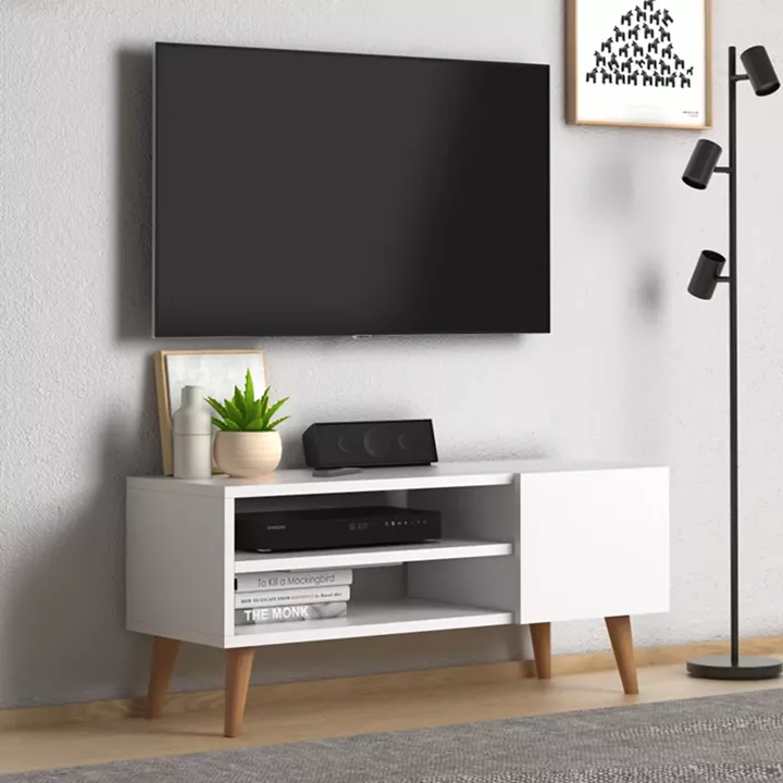 Έπιπλο τηλεόρασης Porto Megapap από μελαμίνη χρώμα λευκό 90x32x42εκ.