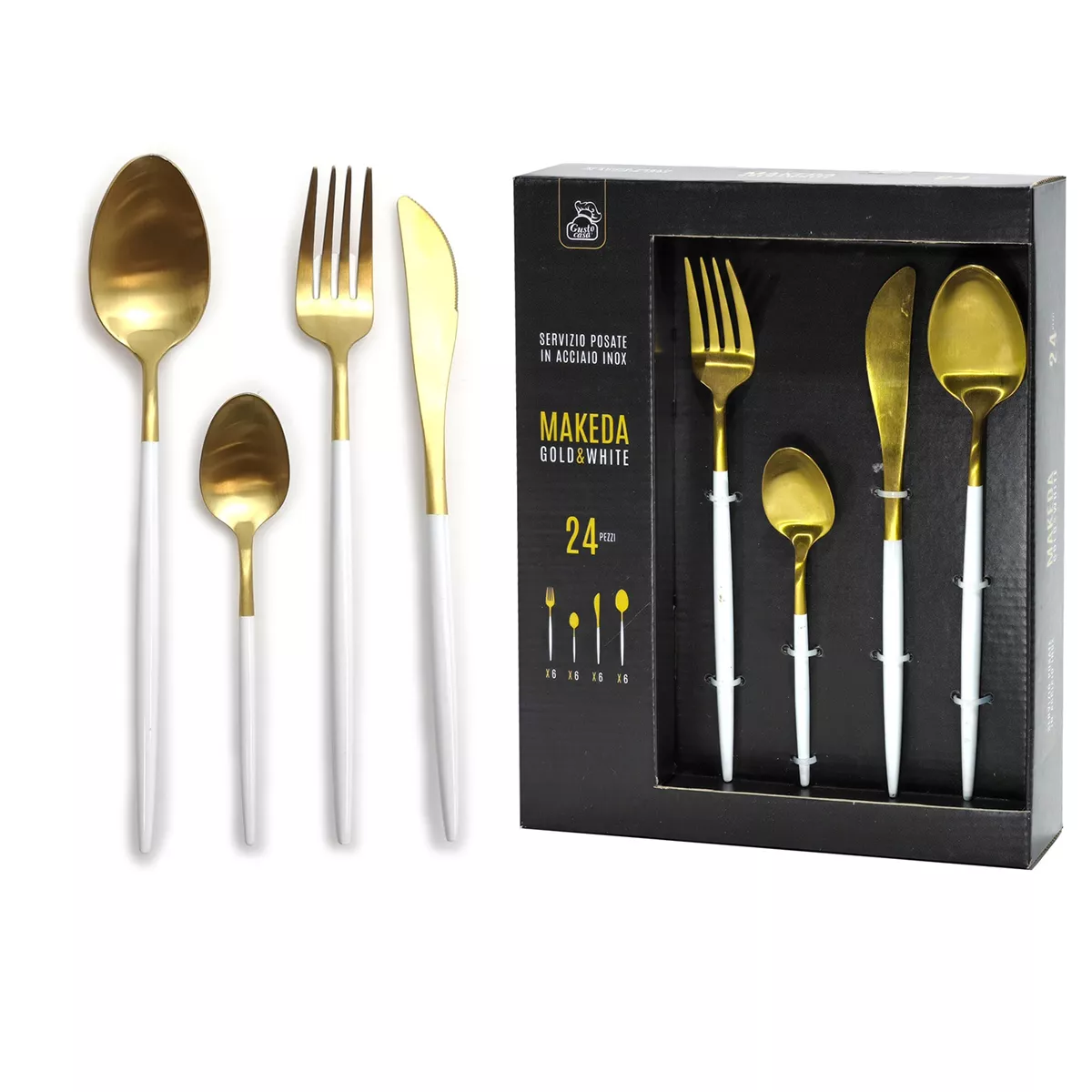 Σετ Μαχαιροπήρουνα MAKEDA Λευκό/Χρυσό Inox 24Τμχ