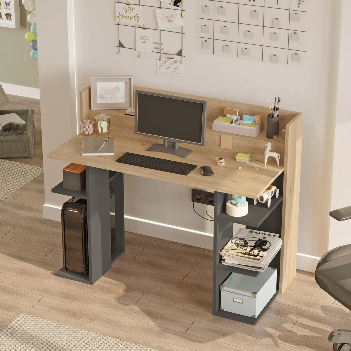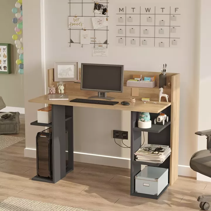 Γραφείο ArteLibre FIFE Φυσικό/Ανθρακί Μοριοσανίδα/Μελαμίνη 124x58x98cm