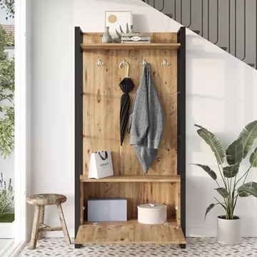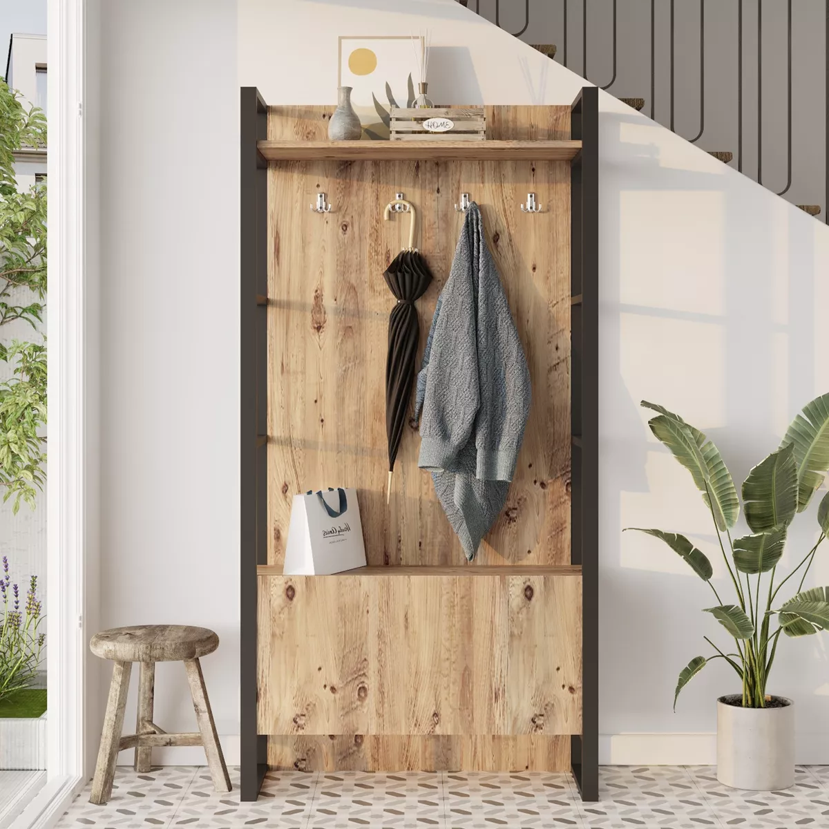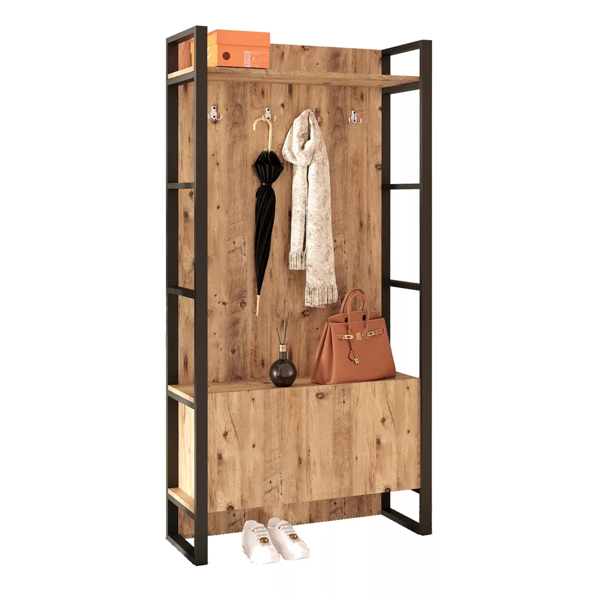 Έπιπλο Εισόδου ArteLibre ABERDEEN Πεύκο/Ανθρακί Μοριοσανίδα/Μέταλλο 90x34x180cm