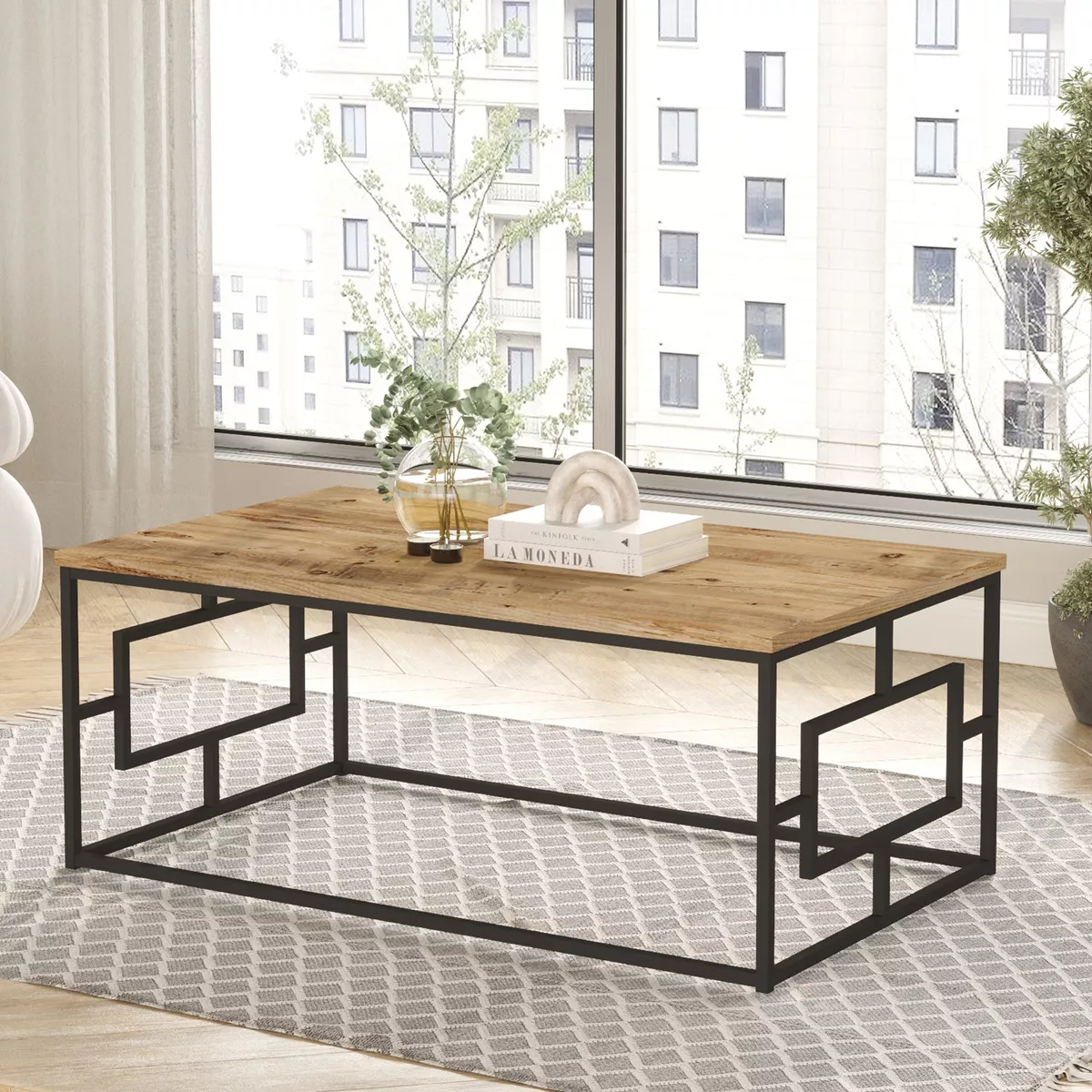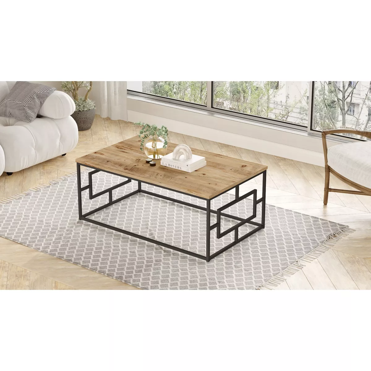 Τραπεζάκι Σαλονιού ArteLibre KINROSS Πεύκο/Ανθρακί Μοριοσανίδα/Μέταλλο 100x60x40cm
