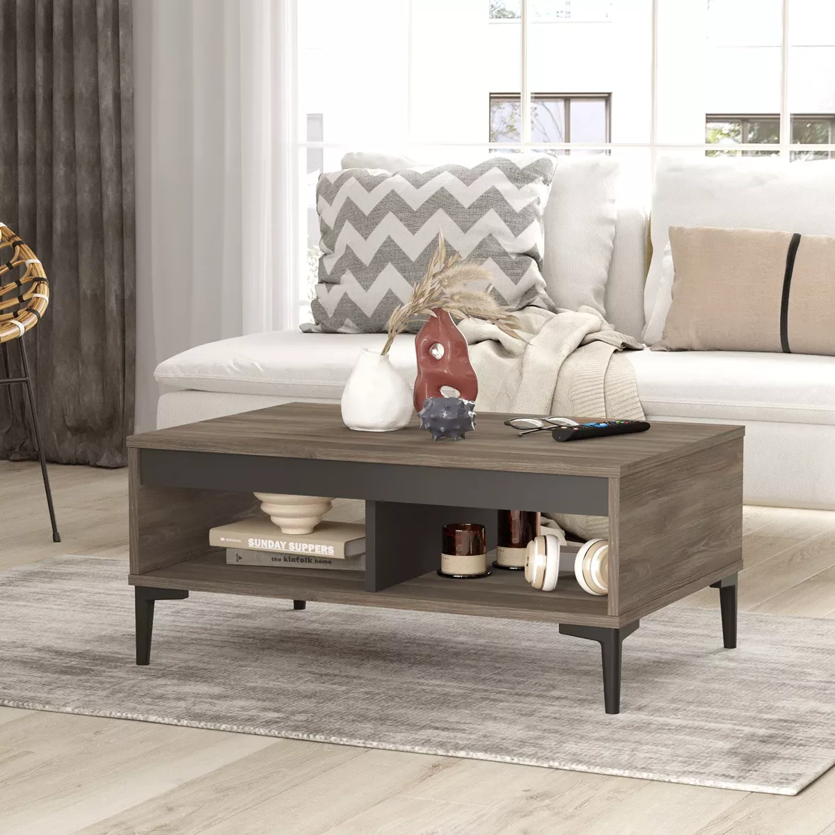 Τραπεζάκι Σαλονιού ArteLibre STIRLING Καφέ/Ανθρακί Μοριοσανίδα/Μελαμίνη 90x60x40.6cm