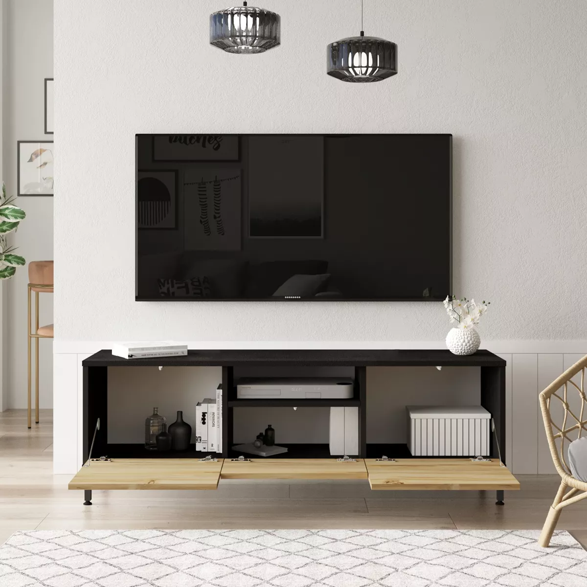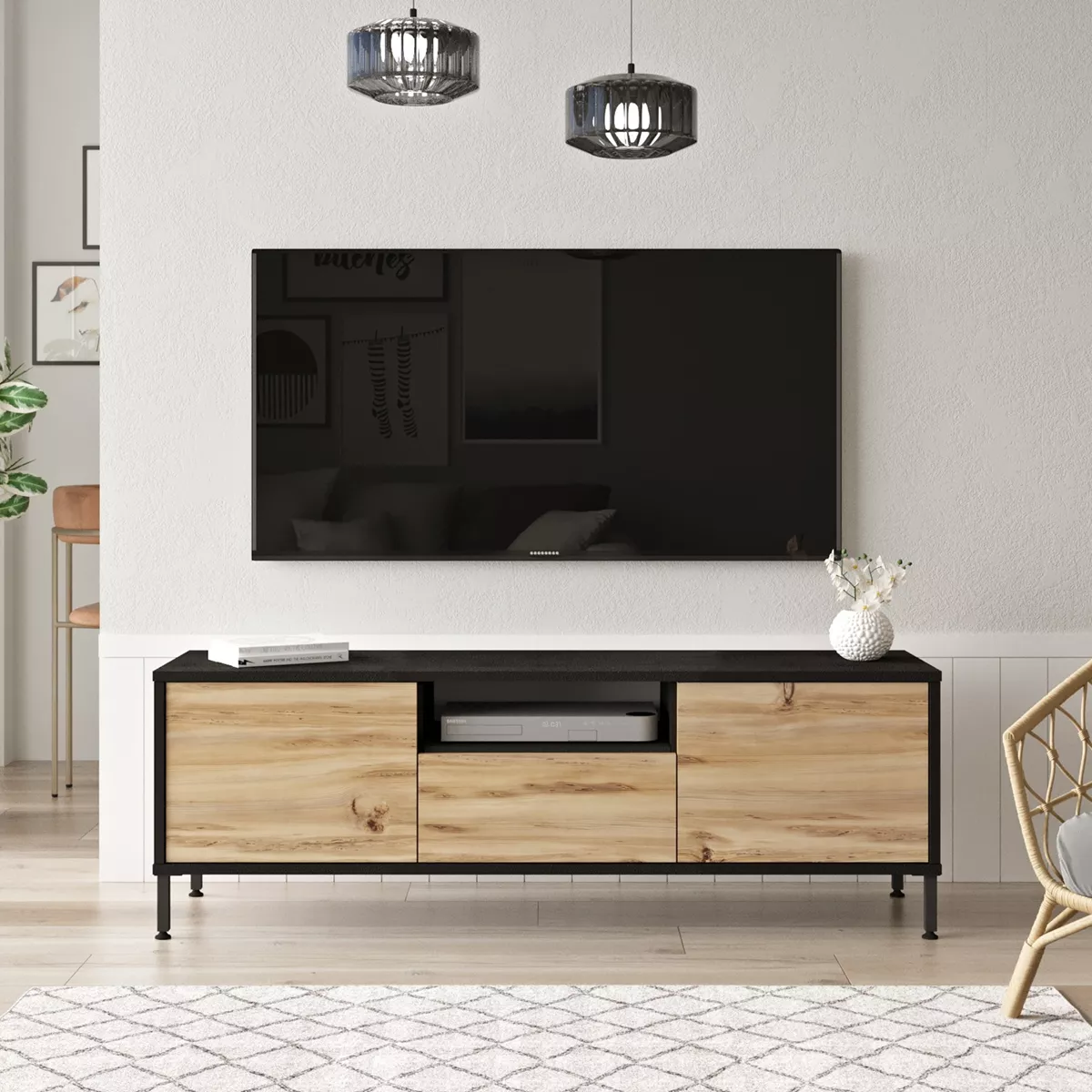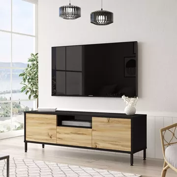 Έπιπλο Τηλεόρασης ArteLibre ARGYLL Φυσικό/Μαύρο Μοριοσανίδα/Μέταλλο 140x35.5x46.4cm