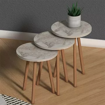 Τραπεζάκι σαλονιού + βοηθητικά τραπεζάκια Elips Megapap από μελαμίνη χρώμα εφέ μαρμάρου