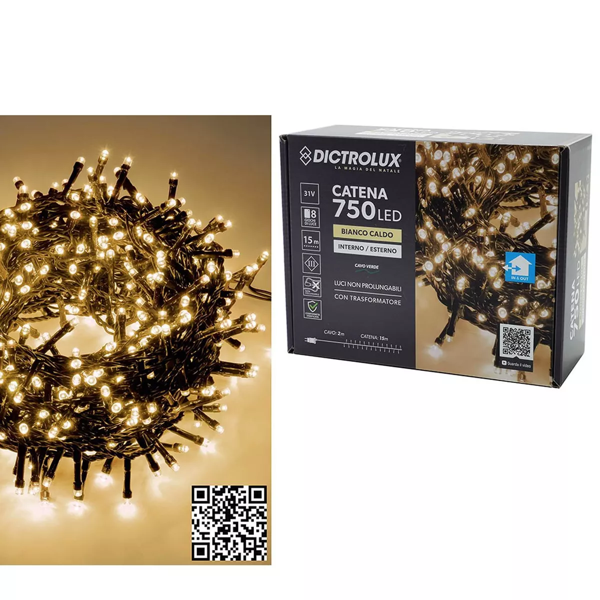 750 LED εσωτ. & εξωτ. χώρου με 8 προγράμματα και μετασχηματιστή θερμό λευκό φως πράσινο καλώδιο μη επεκτεινόμενο ip44 31v 17m