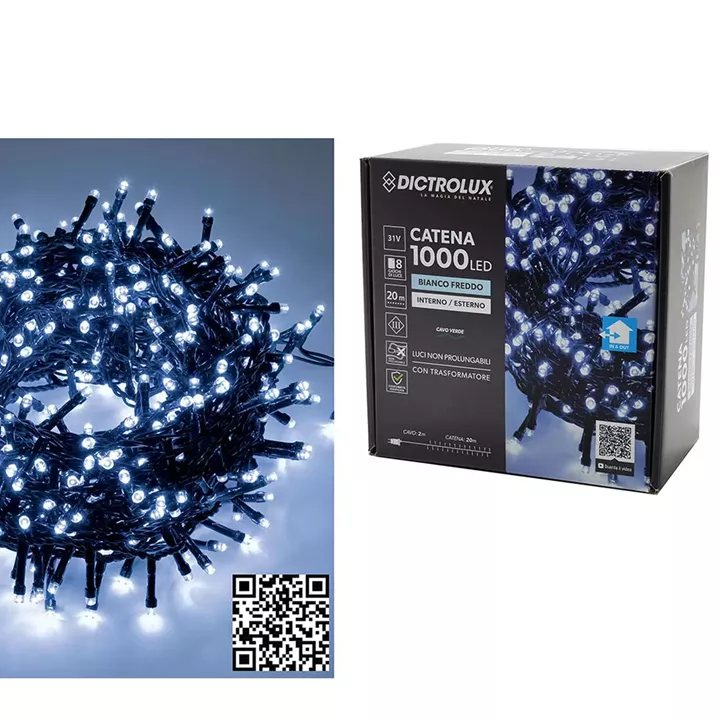 1000 LED εσωτ. & εξωτ. χώρου με 8 προγράμματα και μετασχηματιστή ψυχρό λευκό φως πράσινο καλώδιο μη επεκτεινόμενο ip44 31v 22m
