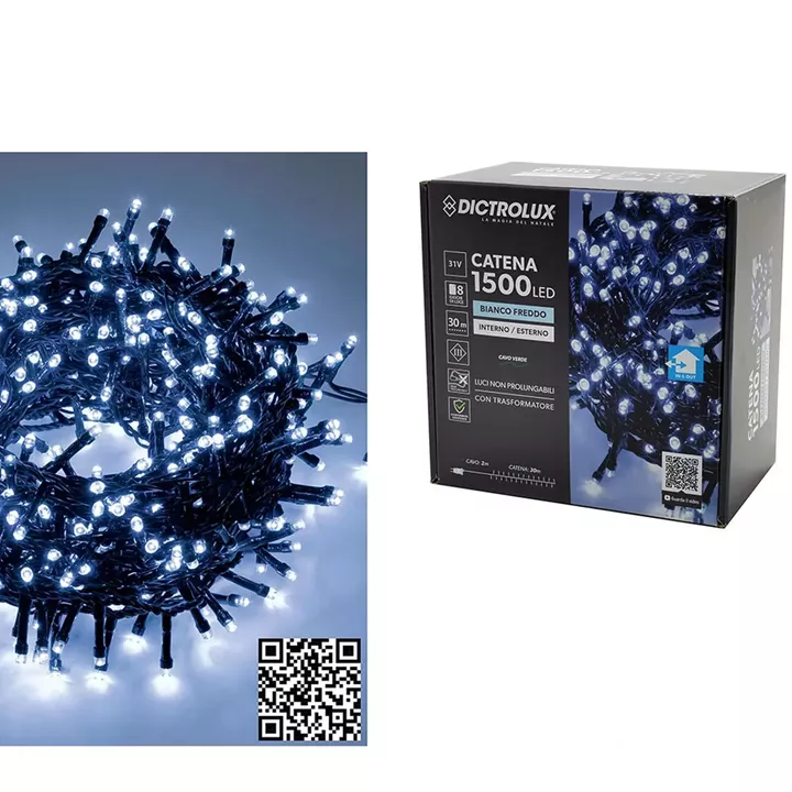 1500 LED εσωτ. & εξωτ. χώρου με 8 προγράμματα και μετασχηματιστή ψυχρό λευκό φως πράσινο καλώδιο μη επεκτεινόμενο ip44 31v 32mm