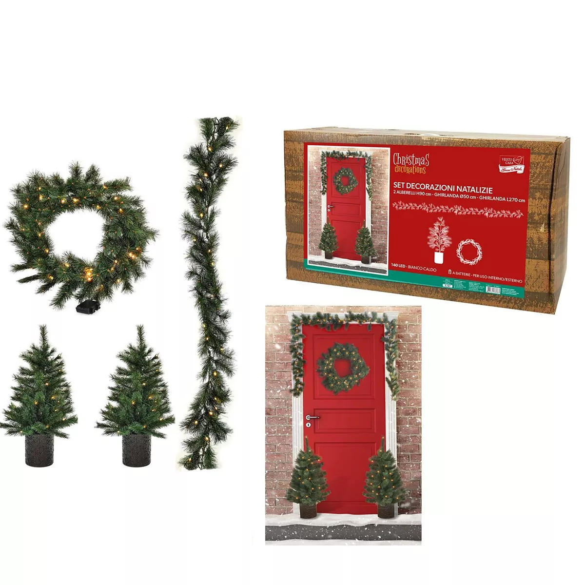 Σετ 2 δεντράκια 90cm γιρλάντα 270cm και στεφάνι φ50cm 4τμχ