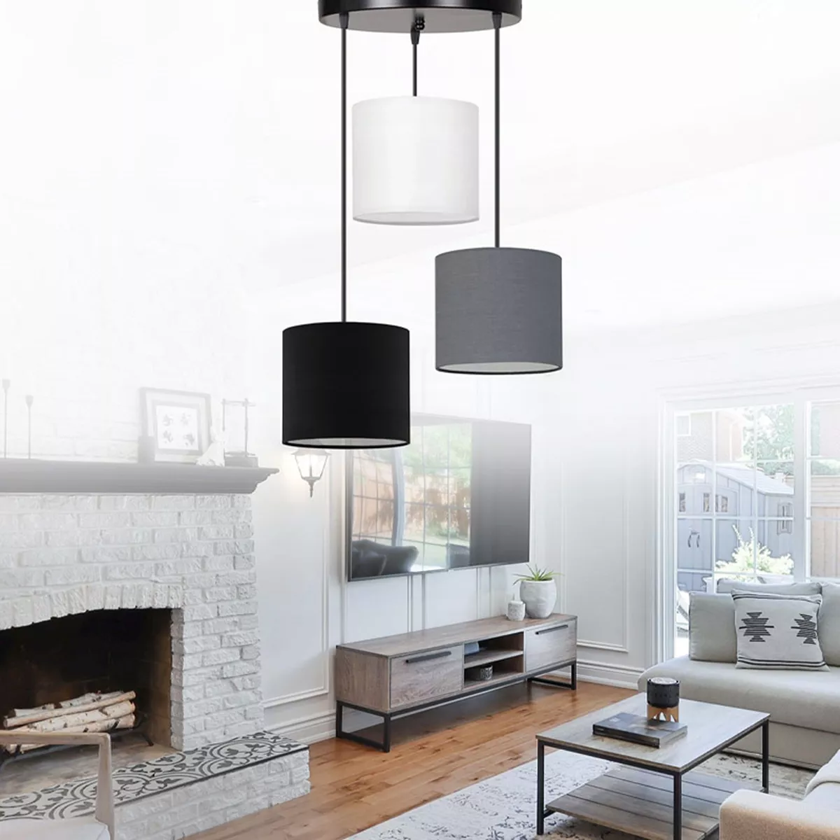 Φωτιστικό οροφής Rosie Megapap υφασμάτινο τρίφωτο χρώμα γκρι/μαύρο 15x15x90εκ.