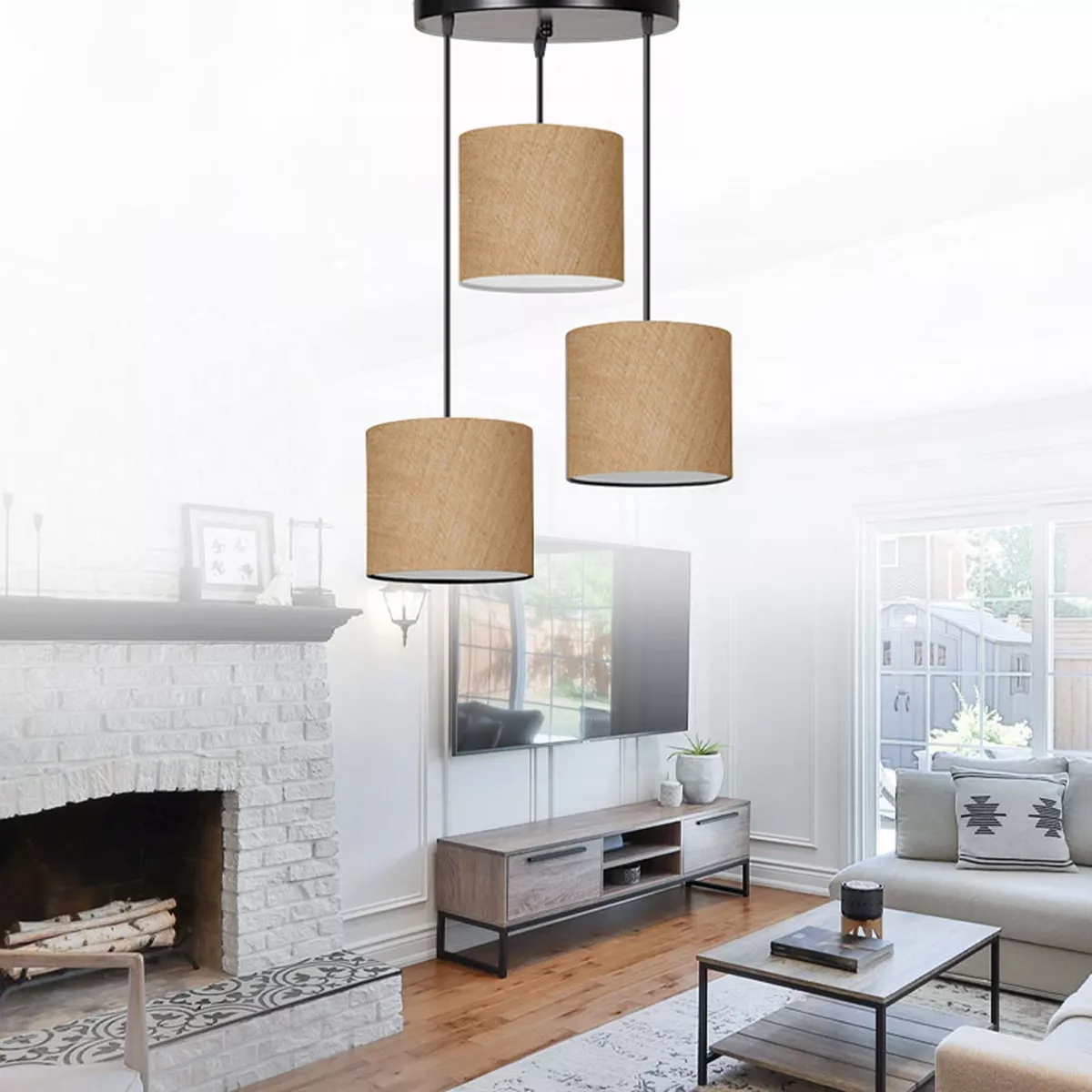 Φωτιστικό οροφής Rosie Megapap γιούτα ύφασμα τρίφωτο χρώμα φυσικό 15x15x90εκ.