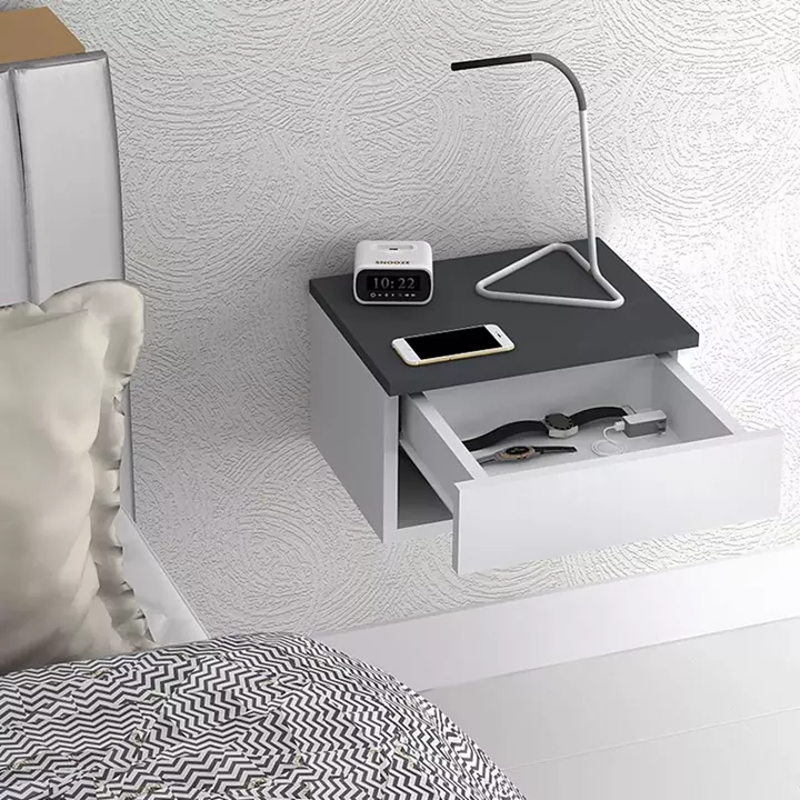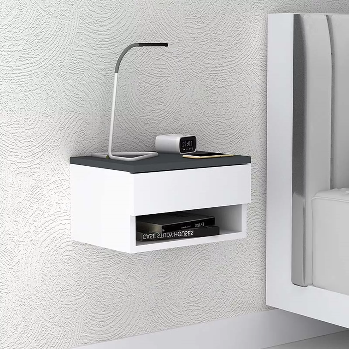 Κομοδίνο επιτοίχιο μελαμίνης Mary Megapap χρώμα ανθρακί - λευκό 40x30x23εκ.
