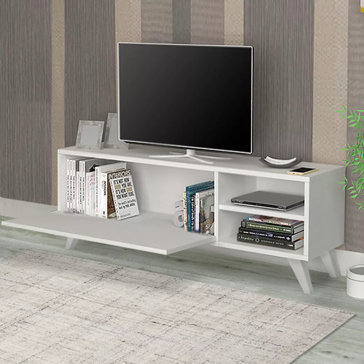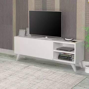 Έπιπλο τηλεόρασης Space Megapap από μελαμίνη χρώμα λευκό 120x35x42εκ.