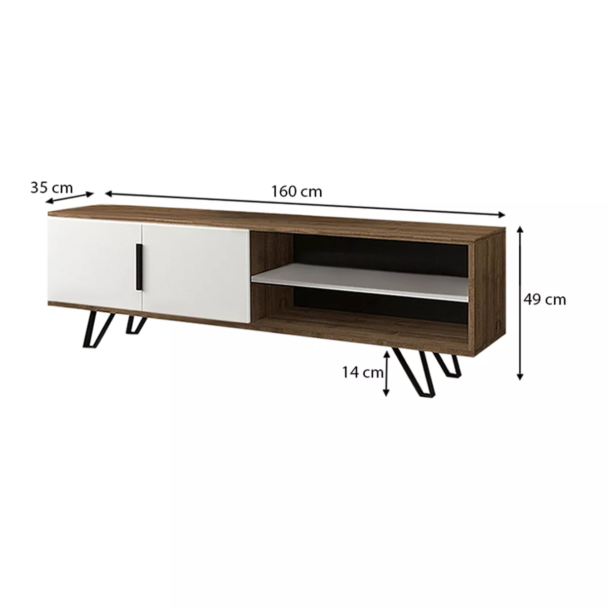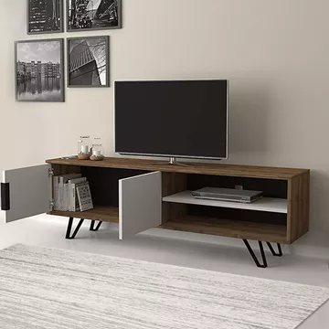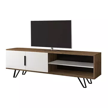 Έπιπλο τηλεόρασης Foot Megapap από μελαμίνη χρώμα καρυδί - λευκό 160x35x49εκ.