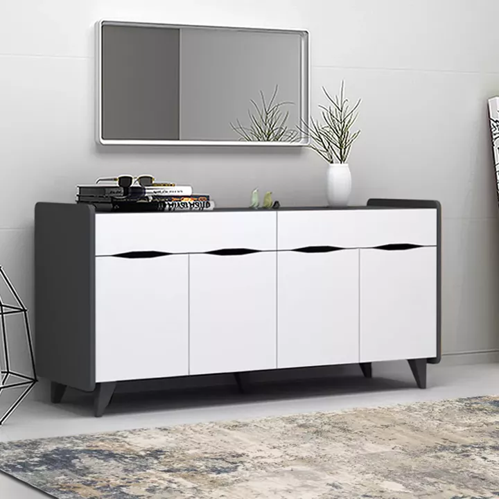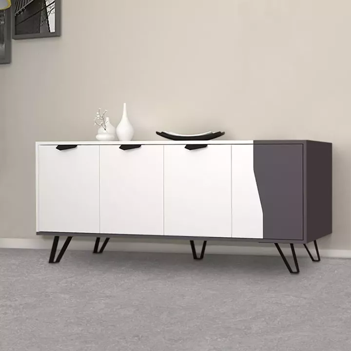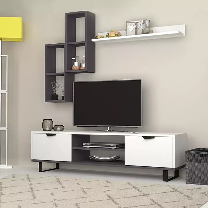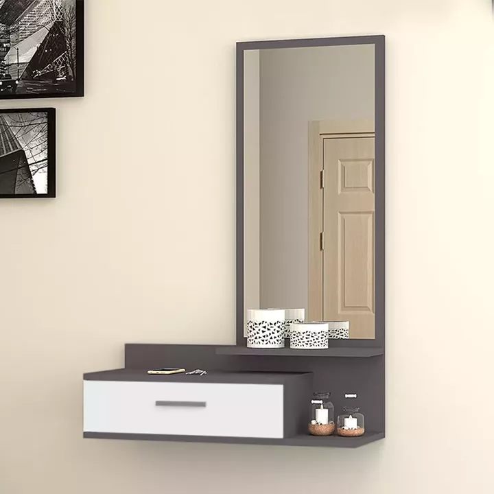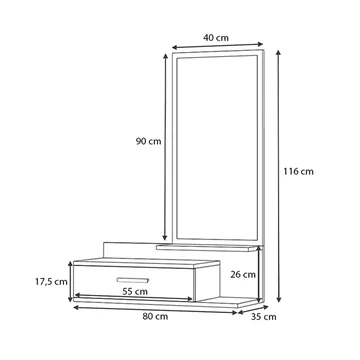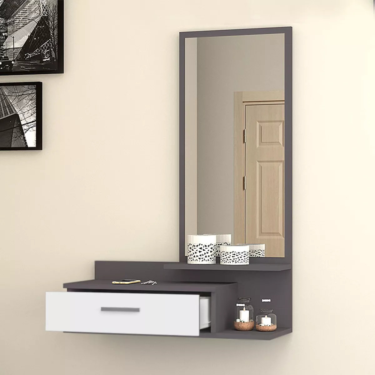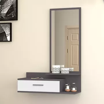 Έπιπλο εισόδου - τουαλέτα μελαμίνης Joy Megapap με καθρέφτη χρώμα γκρι - λευκό 80x35x116εκ.