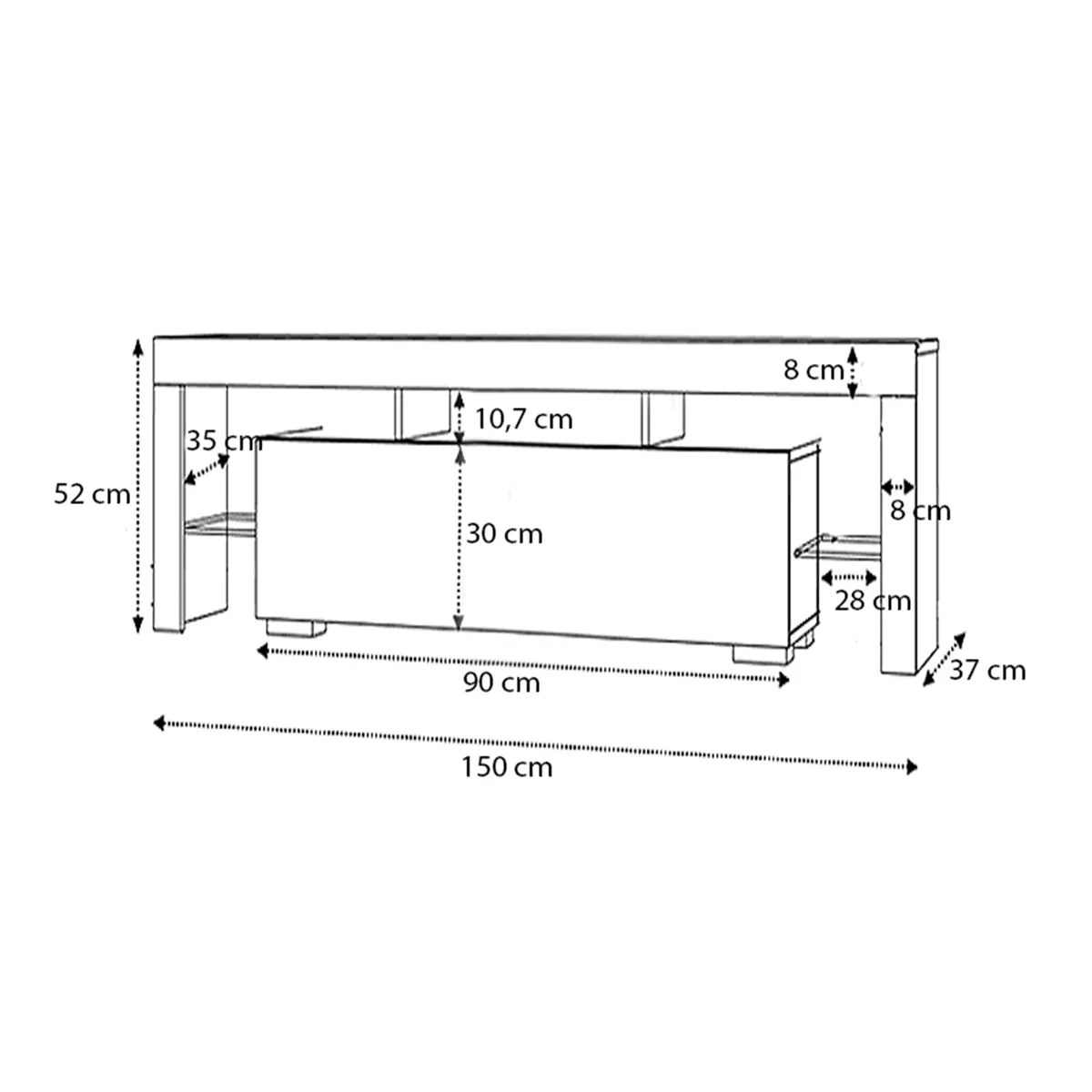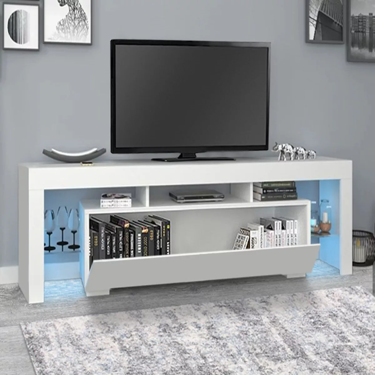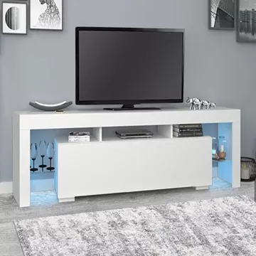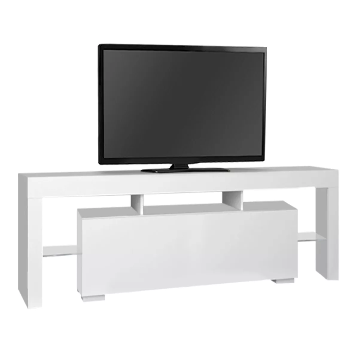 Έπιπλο τηλεόρασης Stilo Megapap από μελαμίνη με φωτισμό LED χρώμα λευκό 150x37x52εκ.