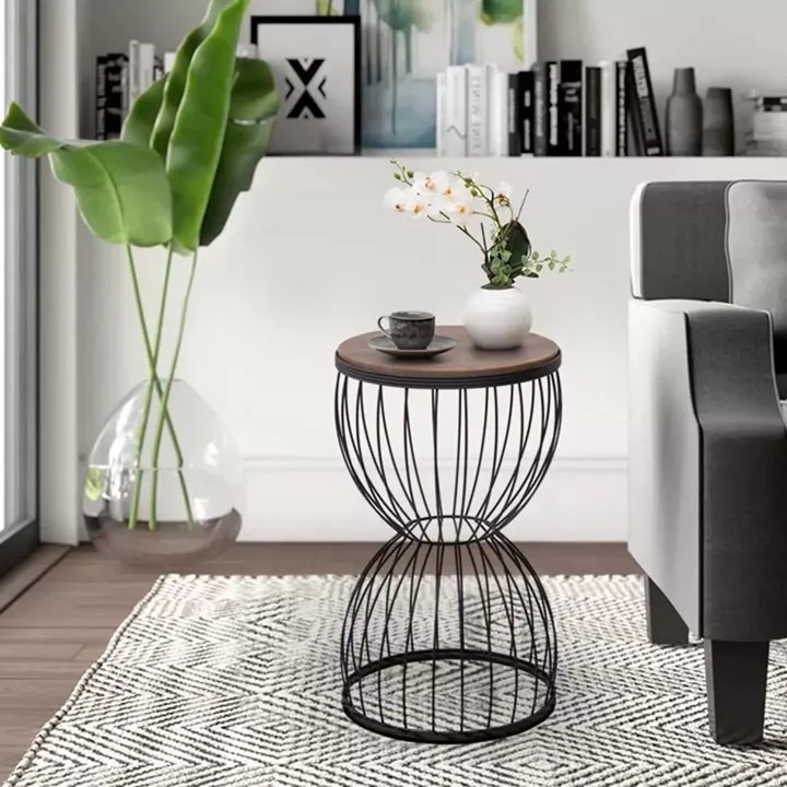 Βοηθητικό τραπεζάκι Pino Megapap μεταλλικό - Mdf χρώμα μαύρο - καρυδί 35x35x58εκ.