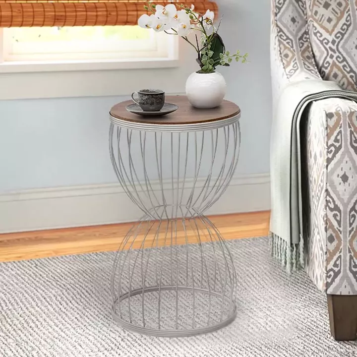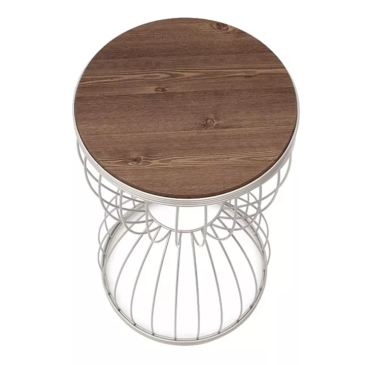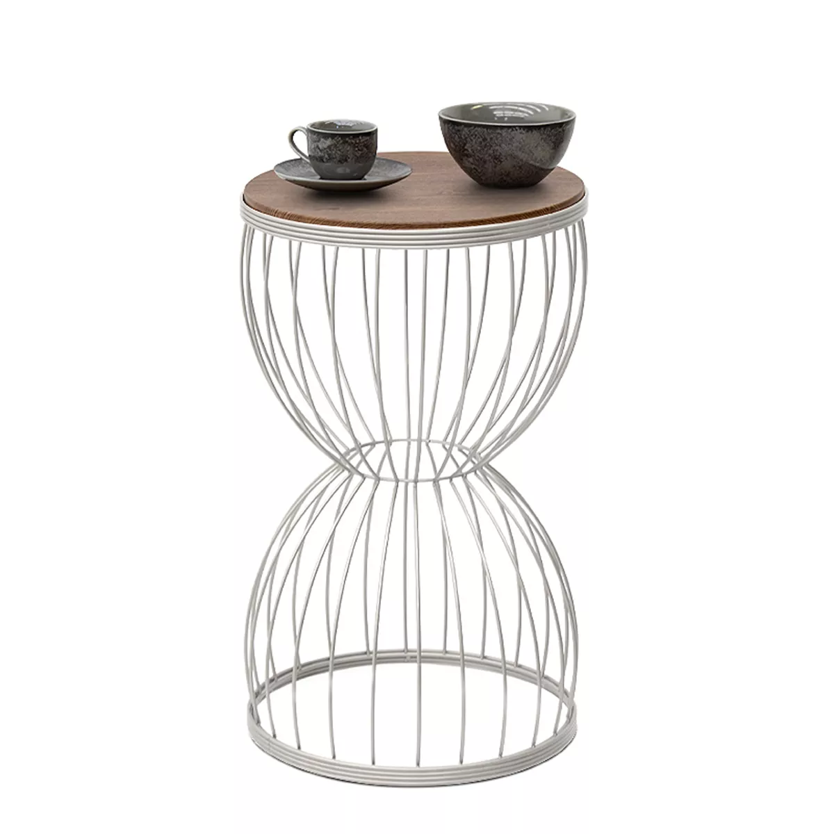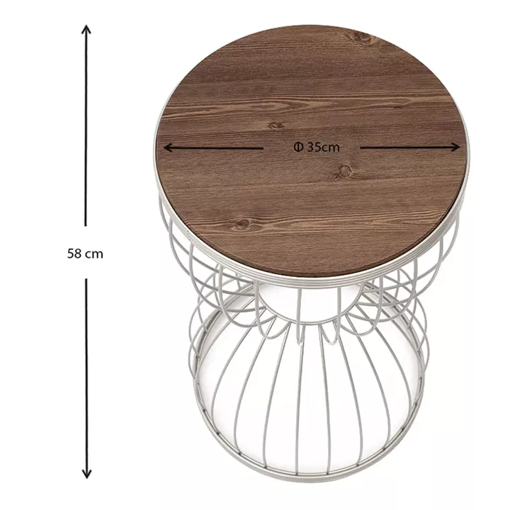 Βοηθητικό τραπεζάκι Pino Megapap μεταλλικό - Mdf χρώμα λευκό - καρυδί 35x35x58εκ.