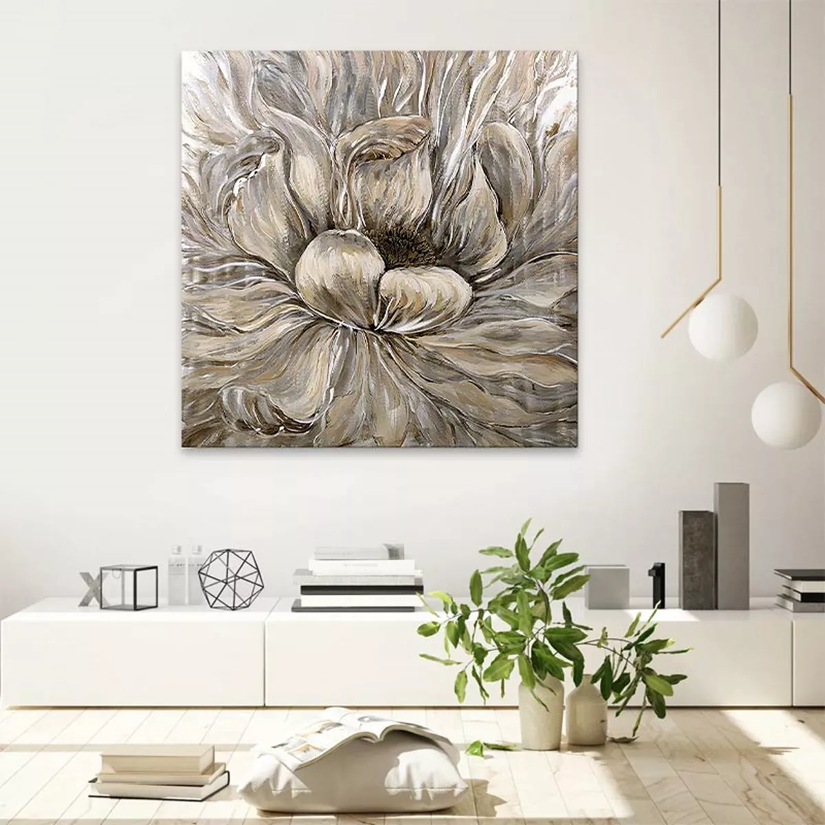 Πίνακας σε καμβά "Golden Flowers" Megapap ψηφιακής εκτύπωσης 100x100x3εκ.