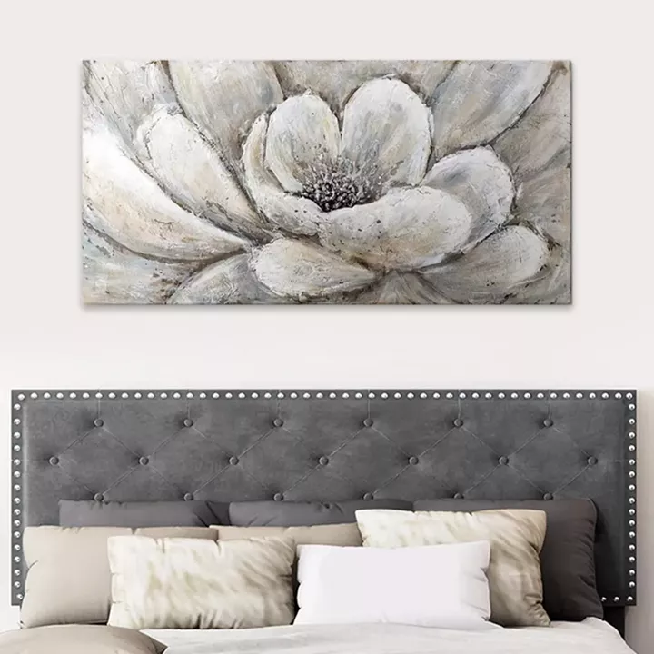 Πίνακας σε καμβά "Silver Flowers" Megapap ψηφιακής εκτύπωσης 140x70x3εκ.