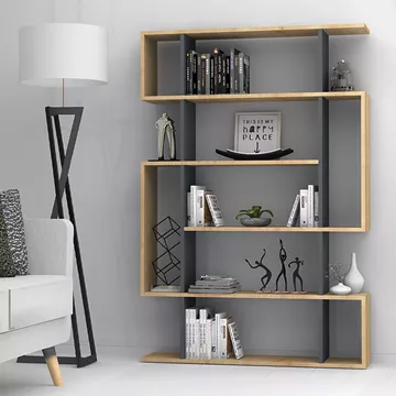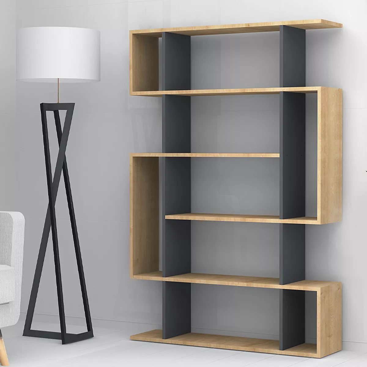 Βιβλιοθήκη μελαμίνης Clint Megapap χρώμα sonoma - ανθρακί 108x25x161εκ.