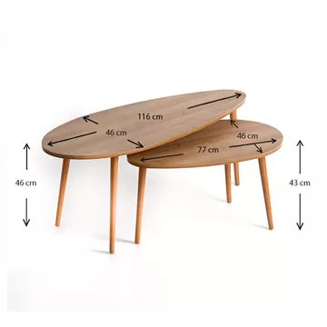 Βοηθητικά τραπεζάκια Elips Megapap από μελαμίνη χρώμα pine oak 116x46x46εκ.