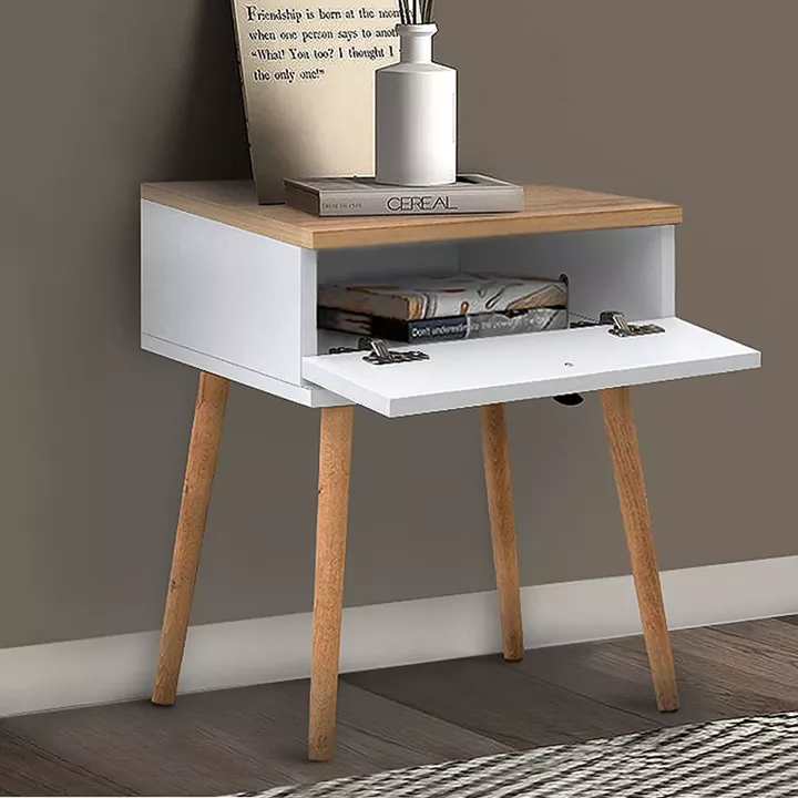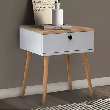 Κομοδίνο Pauline Megapap μελαμίνης χρώμα pine - λευκό 45x35x61εκ.