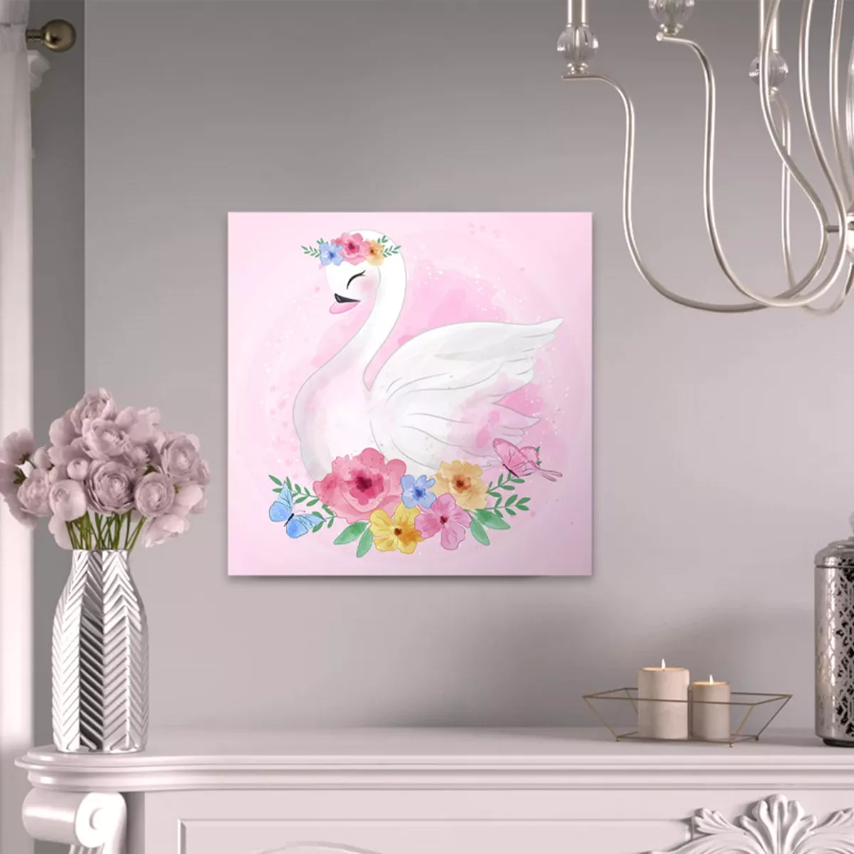 Πίνακας σε καμβά "Baby Swan" Megapap ψηφιακής εκτύπωσης 40x40x3εκ.