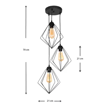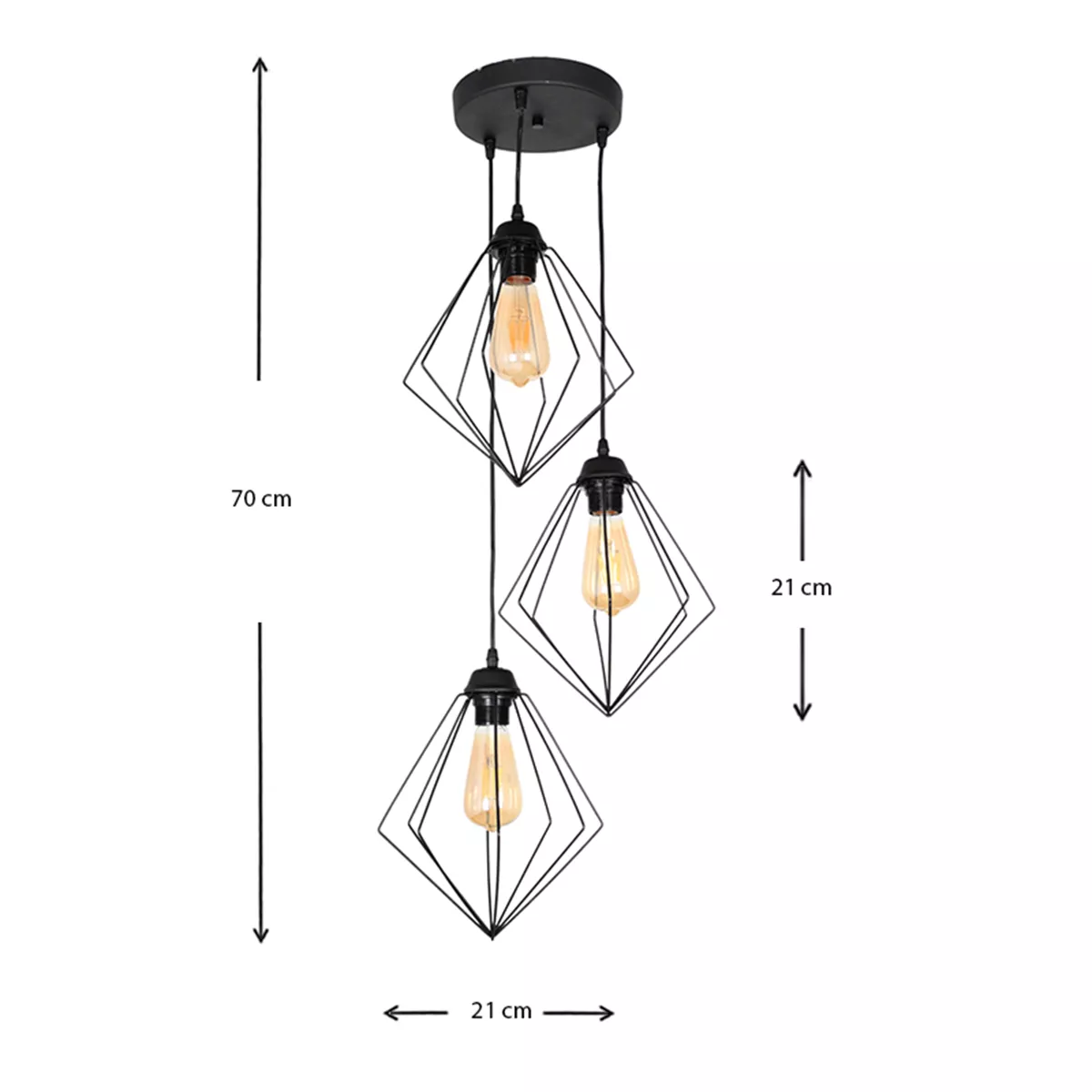 Φωτιστικό οροφής Nura Megapap E27 μεταλλικό τρίφωτο χρώμα μαύρο 21x21x70εκ.