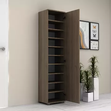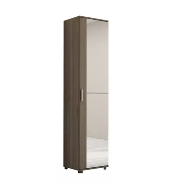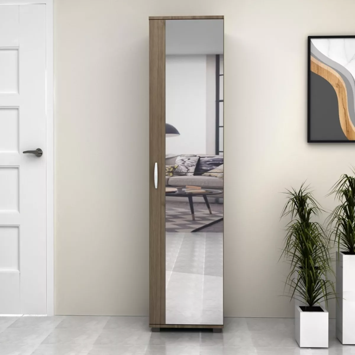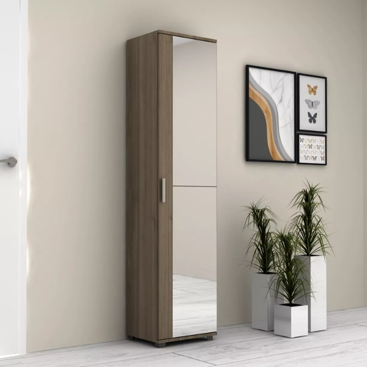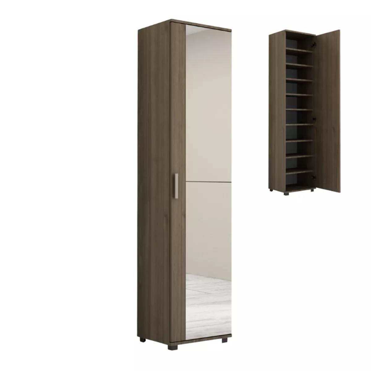 Ντουλάπα ρούχων - παπουτσοθήκη Visla Megapap μονόφυλλη με καθρέπτη χρώμα καρυδί 45x36x187εκ.