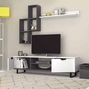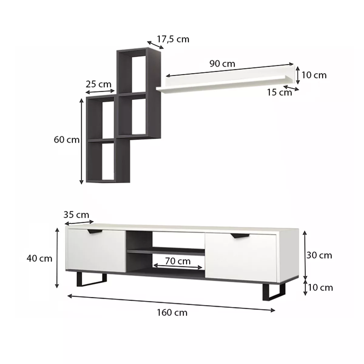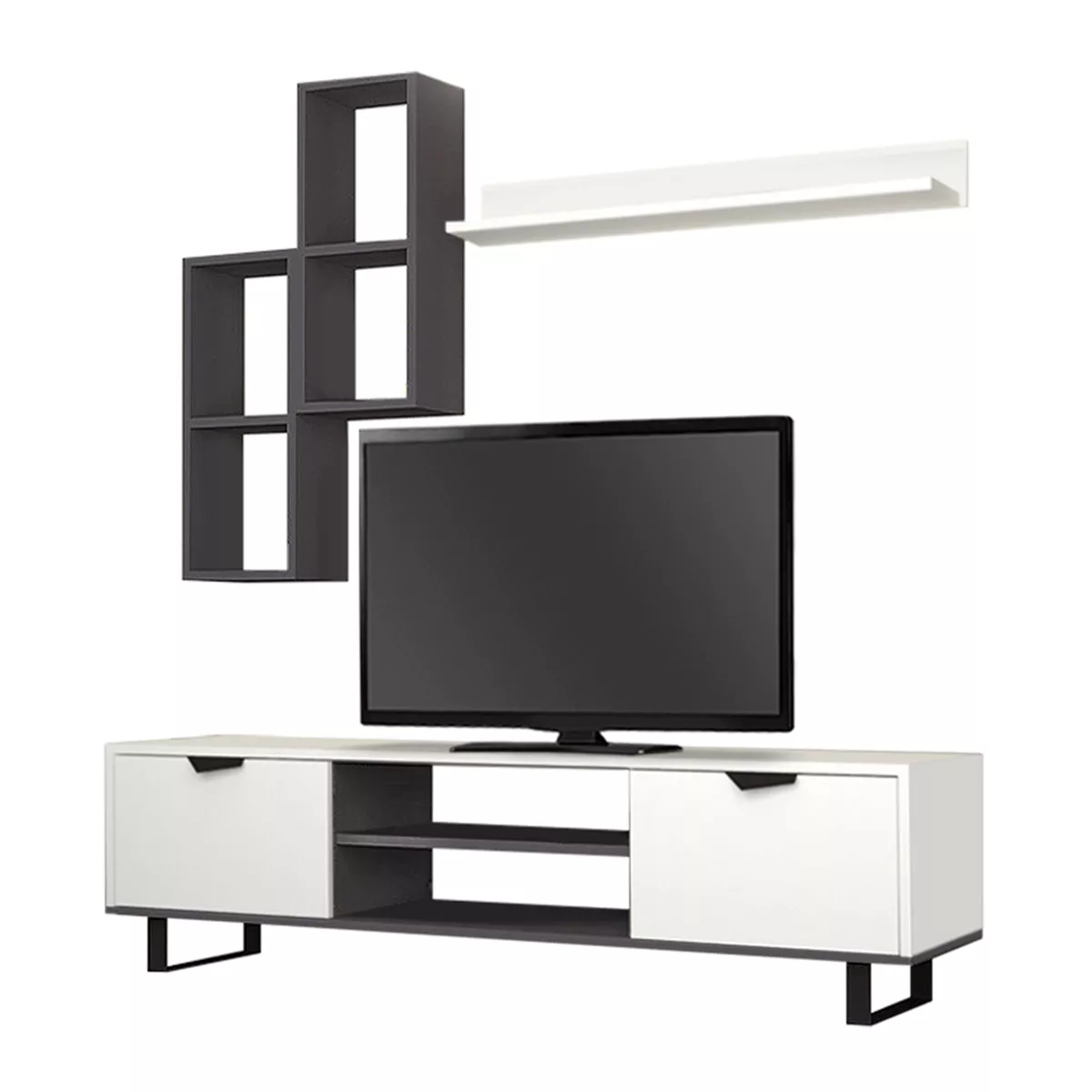 Σύνθεση τηλεόρασης Lonsa Megapap από μελαμίνη χρώμα λευκό 160x35x40εκ.