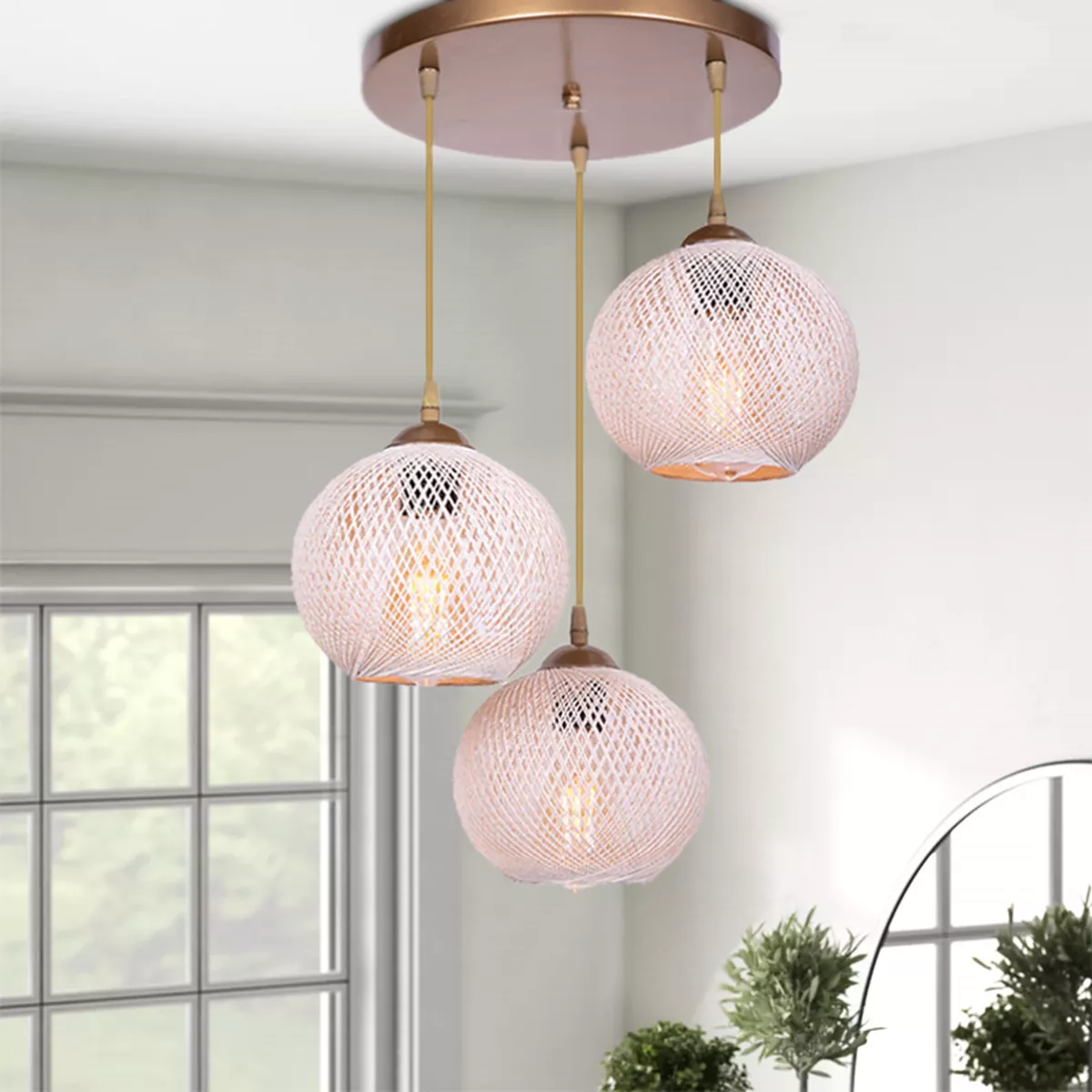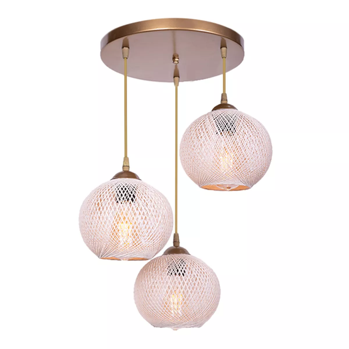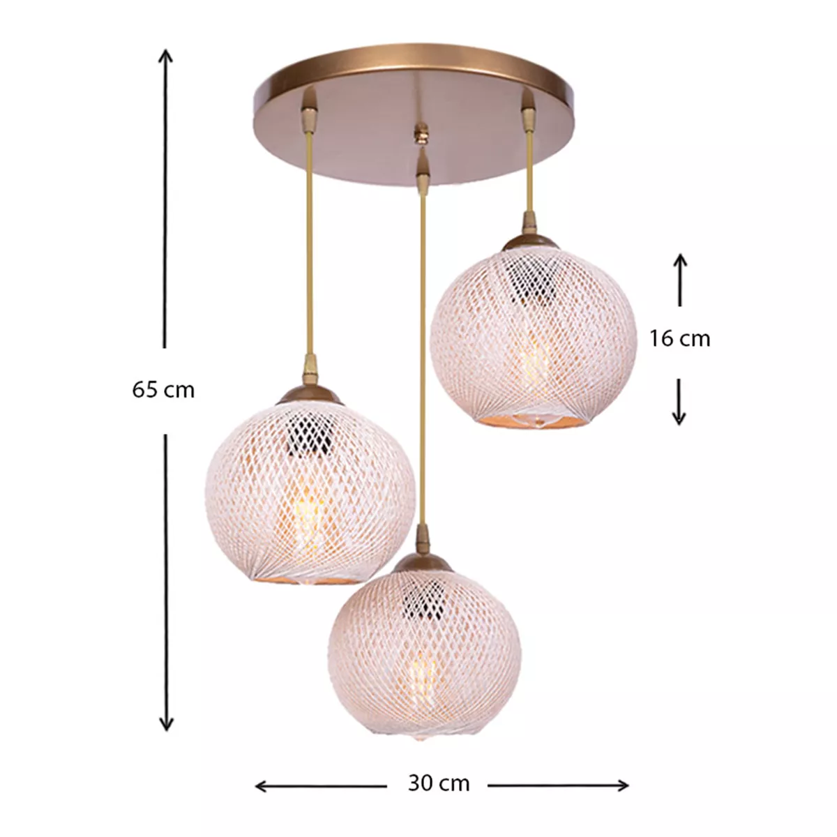 Φωτιστικό οροφής Riordan Megapap E27 μεταλλικό/σχοινί τρίφωτο σε χρυσό/μπεζ 30x30x65εκ.
