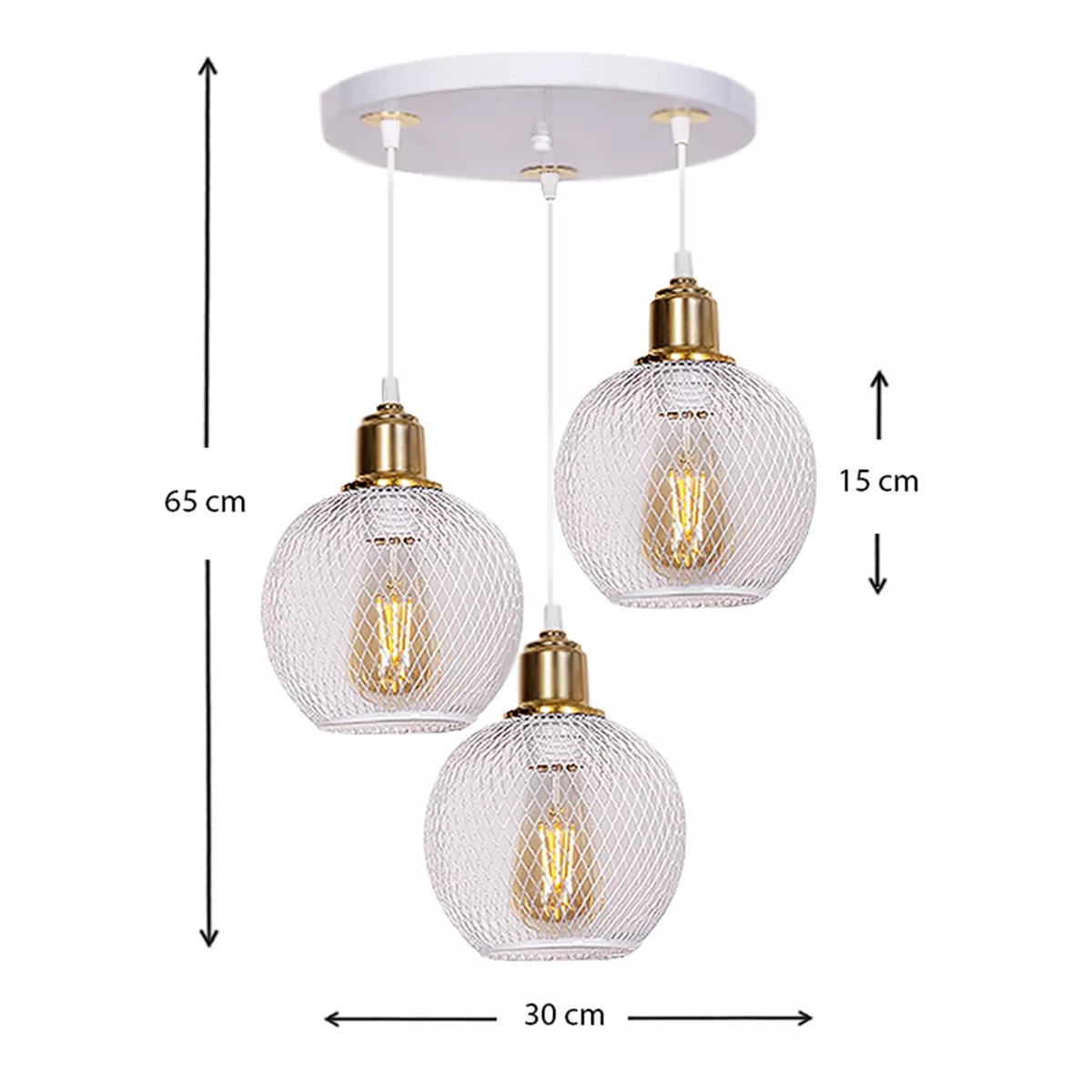 Φωτιστικό οροφής Amos Megapap E27 μεταλλικό τρίφωτο χρώμα λευκό - χρυσό 30x30x65εκ.