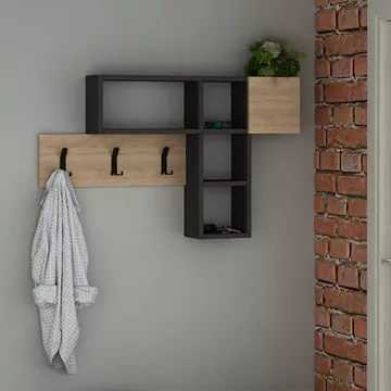 Κρεμάστρα τοίχου Game Megapap από μελαμίνη χρώμα φυσικό οξιάς - ανθρακί 99,5x15x61εκ.