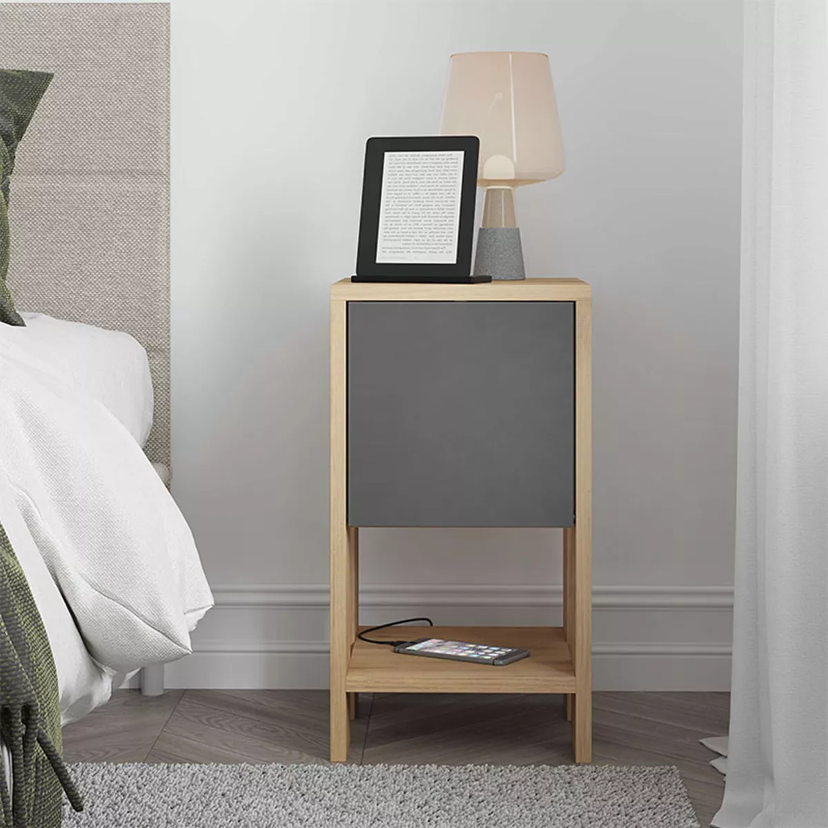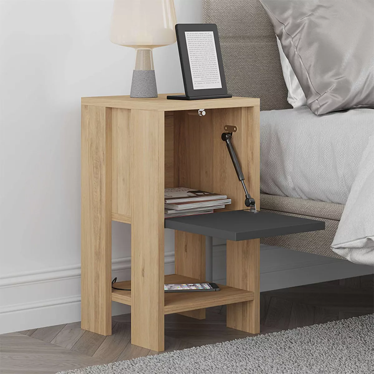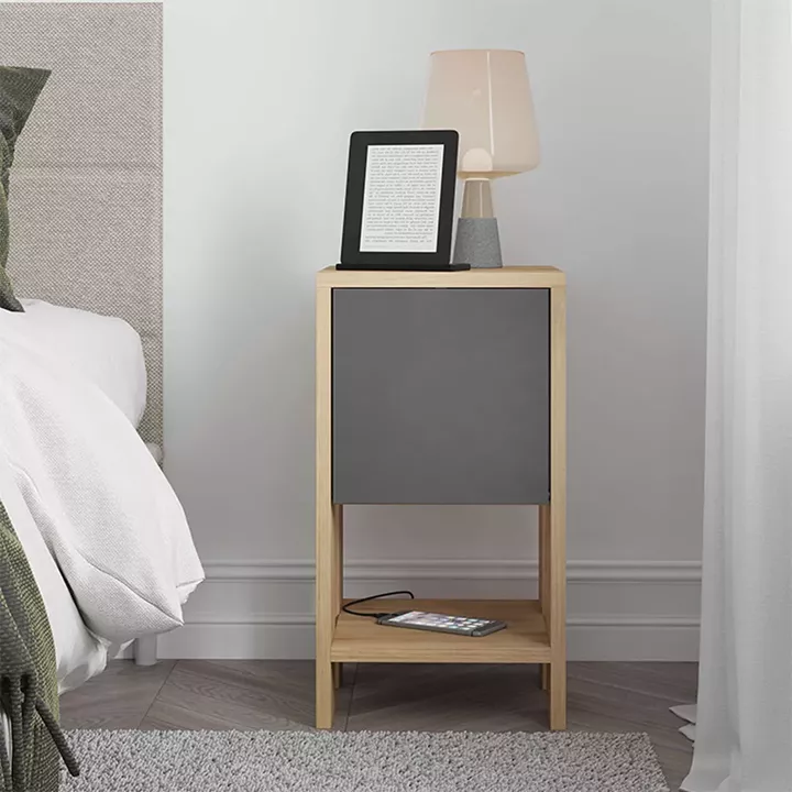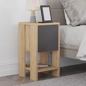 Κομοδίνο μελαμίνης Ema Megapap χρώμα φυσικό οξιάς - ανθρακί 30x30x55εκ.
