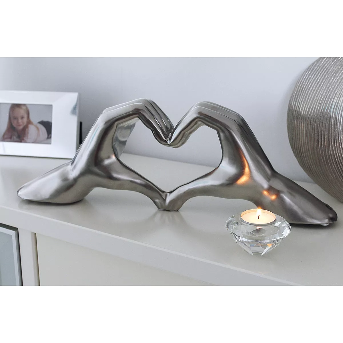 Διακοσμητικό ArteLibre Χέρια Σχηματίζουν Καρδιά Ασημί Κεραμικό 10x45x15cm