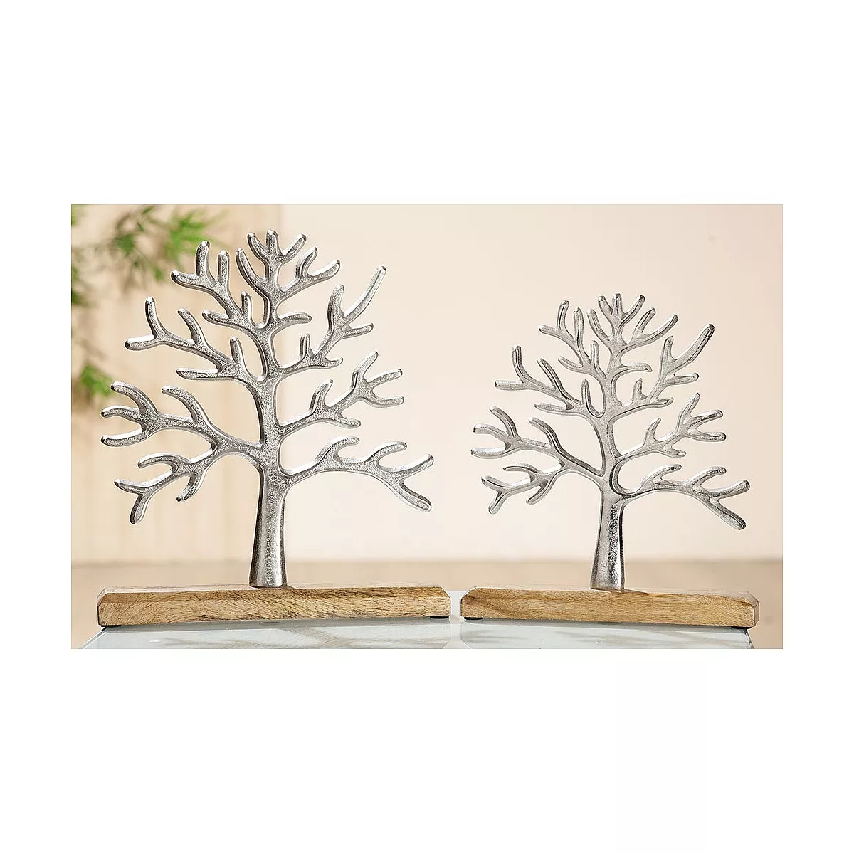 Διακοσμητικό ArteLibre Δέντρο Της Ζωής Σε Βάση Ασημί/Φυσικό Αλουμίνιο/Ξύλο 23x5x26cm