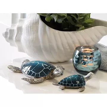 Διακοσμητικό ArteLibre Θαλάσσια Χελώνα Μπλε/Ασημί Polyresin 16x18x4cm