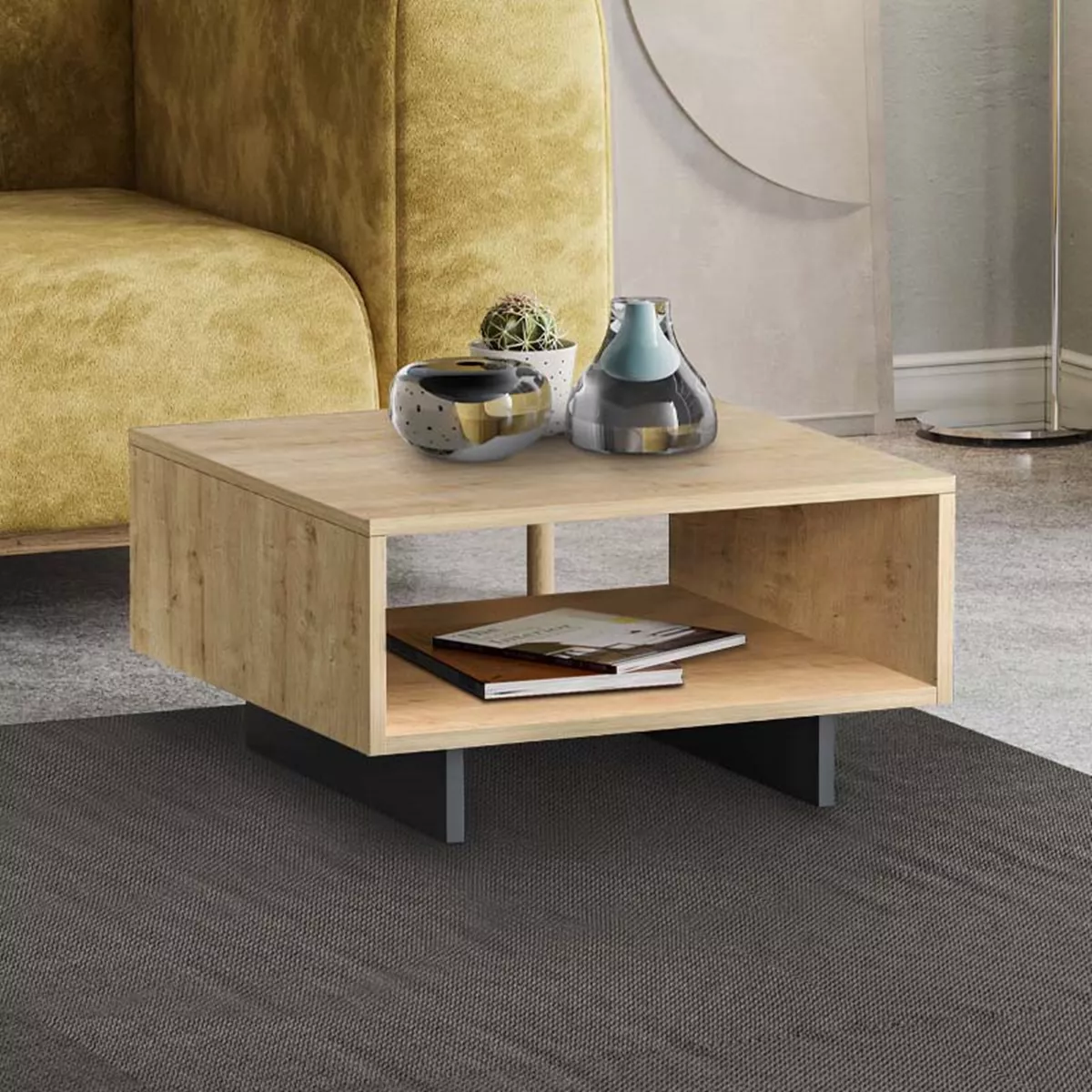 Τραπεζάκι σαλονιού Hola Megapap μελαμίνης χρώμα φυσικό οξιάς - ανθρακί 60x60x32εκ.