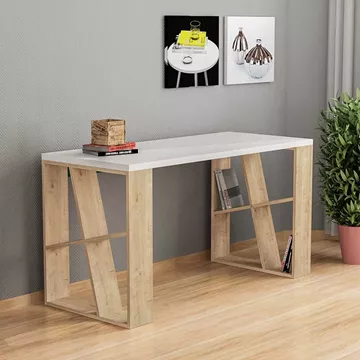Γραφείο εργασίας Honey Megapap από μελαμίνη χρώμα λευκό - φυσικό οξιάς 137x60x75εκ